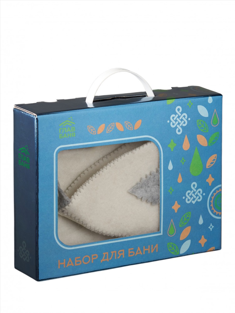 Набор в подарочной коробке с удобной ручкой. Все изделия выполнены из плотного войлока и дополнены петелькой-подвесом. Изделия из натуральной шерсти - это защита от высоких температур. В наборе собрано все необходимое для комфортного нахождения в бане (шапка,рукавица,коврик) Комментарии к товару