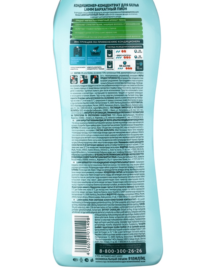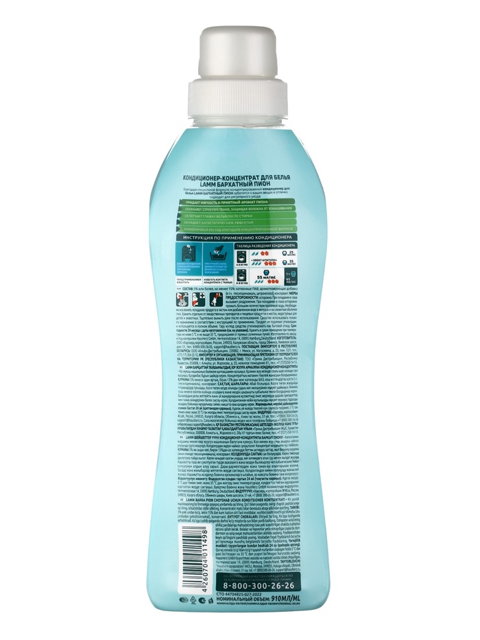 Совет: для усиления аромата и мягкости используйте кондиционер вместе с гелем LAMM «Бархатный пион» из той же серии. Комментарии к товару