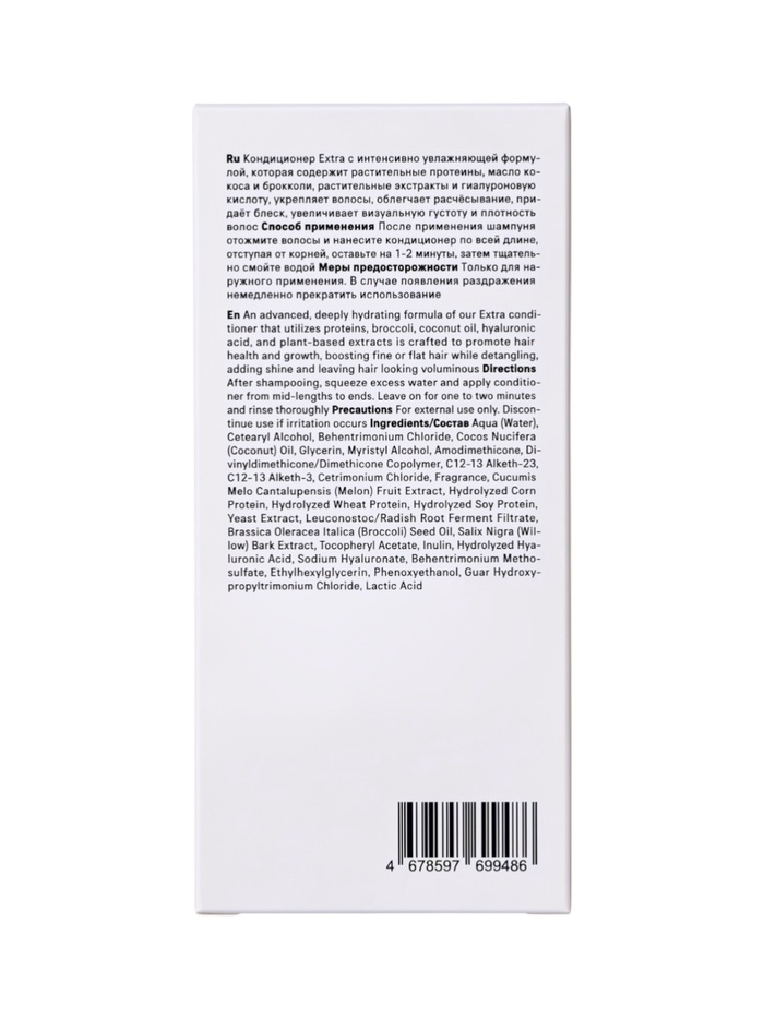Габариты: 15 x 7 x 7 Страна: Россия В боксе: 36 шт Состав: См. на упаковке Материалы: см. на упаковке Фасовка: по 1 шт Индивидуальная упаковка: Без упаковки Сертификат: ЕАС Объём, мл: 280 Темпер. ограничение НЕ НИЖЕ ℃: 0 Тип волос: Для всех типов Эффект: Гладкость Этот кондиционер создан для того, чтобы сделать волосы послушными, гладкими и легко расчесываемыми. Специальная формула борется со статическим электричеством, устраняя пушение и эффект спутанных, неухоженных волос, возвращая прядям ухоженный и аккуратный вид. Сочетание гидролизованных растительных протеинов кукурузы, пшеницы и сои укрепляет волосы, заполняет поврежденные участки, повышает эластичность и предотвращает ломкость. Натуральные масла — кокоса, брокколи и экстракт дыни — интенсивно питают и увлажняют волосы, смягчают кутикулу и придают блеск. Дополнительные активные компоненты, такие как гидролизованная гиалуроновая кислота, инулин и токоферил ацетат, усиливают восстановление, укрепляют защитный барьер волос и способствуют здоровому внешнему виду. Ферментированные экстракты дрожжей и корня редиса активизируют естественные процессы обновления волос, делая их мягкими и сияющими. Легкий аромат придает прядям свежесть и ощущение чистоты. Способ применения После мытья волос шампунем отожмите лишнюю воду, нанесите кондиционер по всей длине волос, избегая корней, оставьте на 1–2 минуты, затем тщательно смойте водой. Состав Вода, амодиметикон, дивинилдиметикон/диметикона сополимер, глицерин, миристиловый спирт, бегентримония метосульфат, цетеариловый спирт, масло кокоса, отдушка, экстракт дыни, гидролизованные протеины кукурузы, гидролизованные протеины пшеницы, гидролизованные протеины сои, экстракт дрожжей, лейконосток/ферментированный фильтрат корня редиса, масло брокколи, экстракт коры черной ивы, токоферилацетат, инулин, гидролизованная гиалуроновая кислота, гиалуронат натрия, гуар гидроксипропилтримония хлорид, молочная кислота, C12-13 алкет-23, C12-13 алкет-3, этилгексилглицерин, феноксиэтанол. Комментарии к товару
