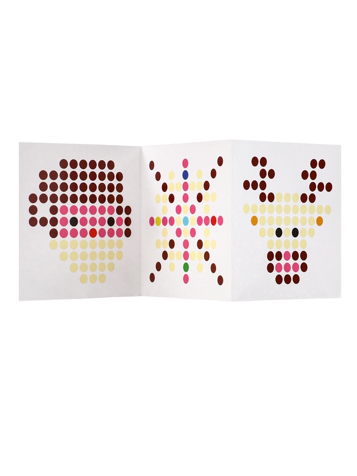 - Пиксельный принцип сборки: Четыре вида шоколадных кубиков служат элементами конструктора. Из них собирают ёлку, снежинку или другие фигуры по схеме.