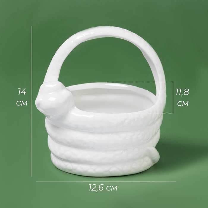 Керамическая конфетница с рельефными змейками — тихий акцент на столе, где сладости встречаются с уютом. Фигуры змей, плавно вылепленные по окружности боковины, словно спят, обвивая форму — не декор, а ощущение: спокойное, чуть сказочное, как зимний узор на стекле.