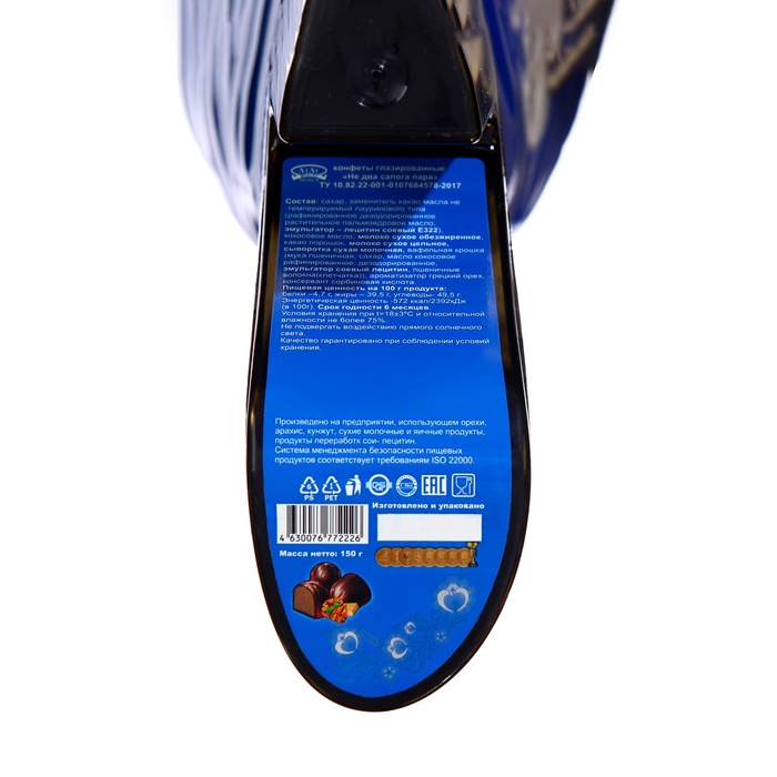 Габариты: 21 x 12 x 9 Страна: Россия В боксе: 6 шт Состав: См. на упаковке Материалы: см. на упаковке Фасовка: по 1 шт Индивидуальная упаковка: Без упаковки Сертификат: ЕАС Вес нетто, г: 150 Тематика: Новогодняя Вид упаковки: Пластиковая упаковка Символ года: Нет Тематика праздника: Рождество, Новый год Вкус: Грецкий орех Вид: Шоколадные Фиксированная цена: Да Новогодний подарок "Не два сапога пара!" в форме сапога – это не только яркое украшение для праздничного стола, но и вкусное угощение, которое порадует сладкоежек любого возраста. Внутри сапога скрывается мармеладное драже, покрытое темным шоколадом, с разнообразными вкусами, которые добавят новогоднего настроения каждому, кто его попробует. Насыщенные и сочные вкусы вишни, апельсина, банана и колы в сочетании с богатым вкусом темного шоколада создают гармоничное и изысканное лакомство, которое станет отличным дополнением к праздничному угощению. Этот подарок в форме новогоднего сапога – идеальный выбор для тех, кто хочет добавить в Новый год немного волшебства и сладкого удовольствия. Красочный дизайн упаковки напоминает о традициях праздника, создавая атмосферу уюта и радости. Мармеладное драже в темном шоколаде не только радует глаз, но и приносит наслаждение своим насыщенным вкусом и разнообразием ароматов. Такой подарок прекрасно подойдет как для детей, так и для взрослых, став отличным сюрпризом под елкой или на праздничном столе. Комментарии к товару