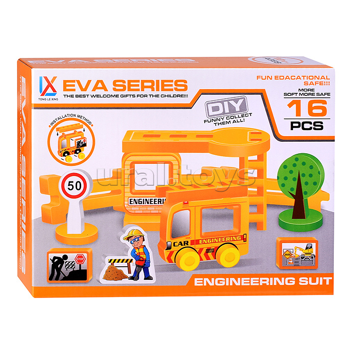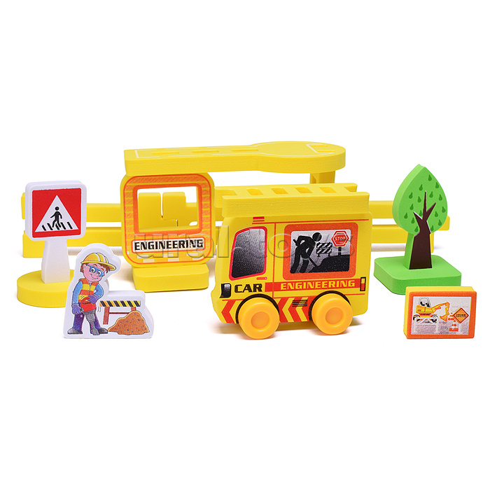 • Конструктор станет интересным и полезным досугом, а также позволит ребенку развить мелкую моторику рук, проявить свои инженерные навыки и пофантазировать. • В комплект входит 16 элементов (фигурка строителя, строительная машина с лестницей, детали и декорации). • Элементы конструктора со специальными пазами, благодаря которым они легко соединяются и разбираются. • Мягкие детали конструктора из ЭВА безопасны для игры. • Размер машины: 10 х4.5х9.5 см. • Размер фигурки - 5,5х1х6 см. • Инструкция по сборке проиллюстрирована на коробке. • Материалы: этиленвинилацетат, пластмасса. • Соответствует требованиям безопасности и стандартам качества продукции. • Предназначен для детей старше 3 лет.