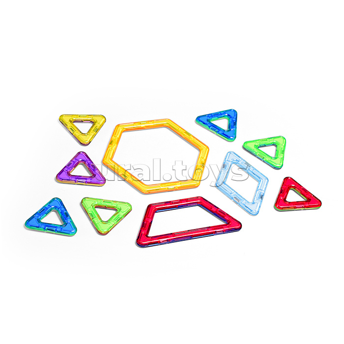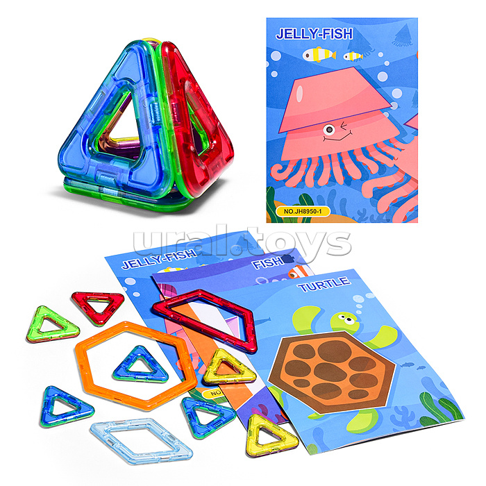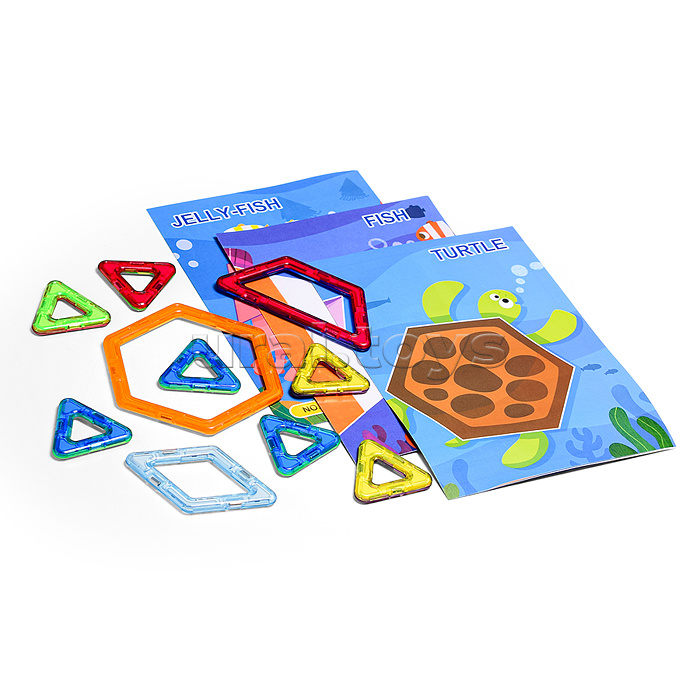 • Магнитный 3D конструктор – нестандартный вид конструктора, который способен увлечь внимание любого ребёнка! • Детали с магнитными гранями позволяют собрать различные фигуры. • В наборе: 10 деталей конструктора, картинки-основы. • Размеры деталей: - 1 шестигранник (8х7.5 см.) - 1 ромб (4х6.5 см.) - 1 трапеция (8х3.5 см.) - 7 треугольников (3.7 см.) • Материалы: ABS пластик, магнит, бумага мелованная. • Соответствует требованиям безопасности продукции. • Для детей от 3-х лет.