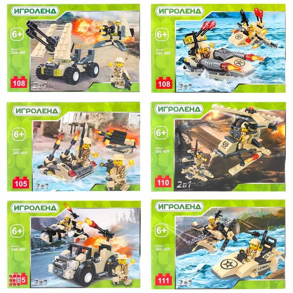 Конструктор "Армия. Военная техника", ABS, 81-88дет., 15х10х5см, 6 дизайнов