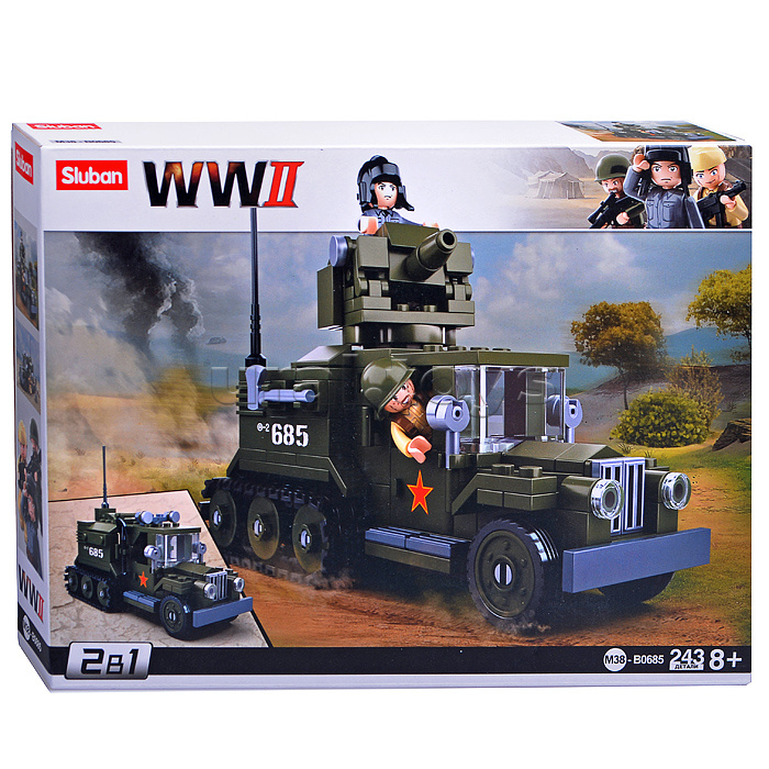 • В наборе 243 детали конструктора, из которых можно собрать военный автомобиль, башню с пушкой, фигурки человечков. • В комплекте 2 мини-фигурки и пошаговая инструкция по сборке. • Длина машины: 14.8 см. • Материал: пластик. • Соответствует требованиям безопасности продукции. • Для детей от 8 лет.