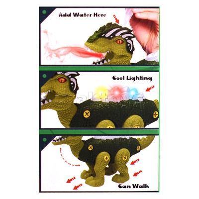 • Размеры игрушки: 24х12х24 см. • Работает от 3-х батареек "АА" (не входят в комплект) • Функции: - движение вперёд. - звук рёва динозавра. - подсветка корпуса. - пар из пасти (при наличии воды) • Игрушку можно разбирать выкручивая пластиковые болты. • Пластиковая отвёртка в комплекте. • Материал: пластик. • Соответствует требованиям безопасности продукции. • Для детей от 3-х лет.