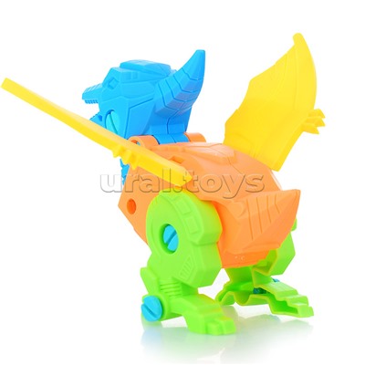 • В наборе: - детали для сборки динозавра. - пластиковая отвёртка. • Размеры динозавра: 10х12х10.5 см. • Из 5 динозавров серии собирается робот. • Материал: пластик. • Соответствует требованиям безопасности продукции. • Для детей от 3-х лет.