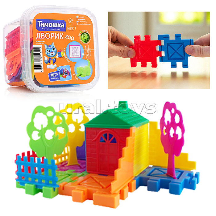 Код: 489037 Штрихкод: 4603727891355 Страна производитель: Россия Размеры упаковки: 13 x 13 x 10 см Количество в коробке: 18 Яркий пластиковый конструктор «Дворик ZOO» предназначен для сюжетно-ролевых игр. В наборе имеются такие детали как: деревья, заборы, домики, которые собираются из стен, окон, дверей и крыши. Также, в наборе есть милые домашние животные, такие как собака, кошка, лошадь, корова и свинья. Такой конструктор сформирует у ребенка первые представления о том, какой бывает домик в деревне и о его домашних животных. 25 деталей. Материал: пластик. Соответствует требованиям безопасности и стандартам качества продукции. Для детей от 3 лет Комментарии к товару