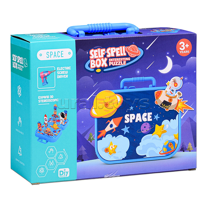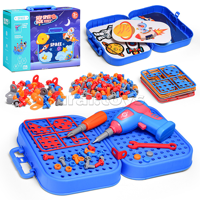 Код: 497801 Штрихкод: 6904112053739 Страна производитель: Китай Размеры упаковки: 24.5 x 7.5 x 18 см Количество в коробке: 24 • В наборе: - кейс-конструктор (23.5х18х6.5 см.) - шуруповёрт - работает от 2-х батареек "АА" (не входят в комплект). - гвоздики, шурупы (170 шт.) - гайки (70 шт.) - детали конструктора (50 шт.) - отвёртка. - гаечный ключ. • Функции шуруповёрта: вкручивание и выкручивание. • Материал: пластик. • Соответствует требованиям безопасности продукции. • Для детей от 3-х лет. Комментарии к товару