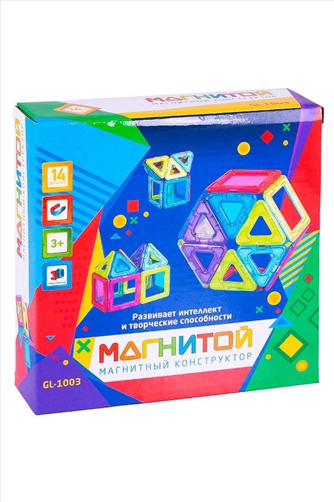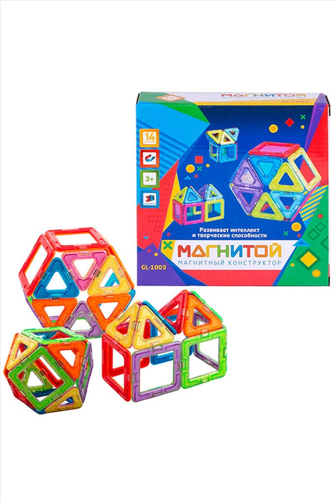 Магнитой — это серия магнитных конструкторов, которые состоят из необычных разноцветных пластиковых деталей в виде различных плоских геометрических фигур и позволяют собирать объемные конструкции. Игровой набор состоит из 6 квадратных и 8 треугольных деталей, в том числе 4 детали с окошком (два квадратных и два треугольных). С помощью деталей юный архитектор сможет соорудить самые разные оригинальные 3D фигуры. Каждая деталь конструктора присоединяется к другой с помощью магнита, расположенного внутри. Игровой процесс увлечет ребенка и будет способствовать развитию логики, мышления, фантазии, воображения и мелкой моторики рук. Количество деталей:14