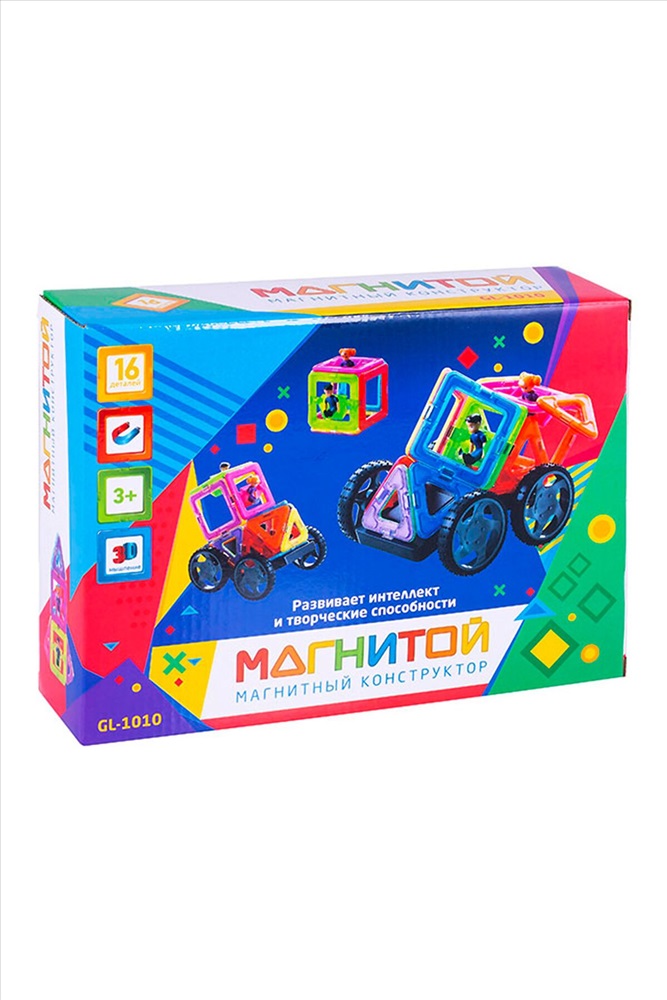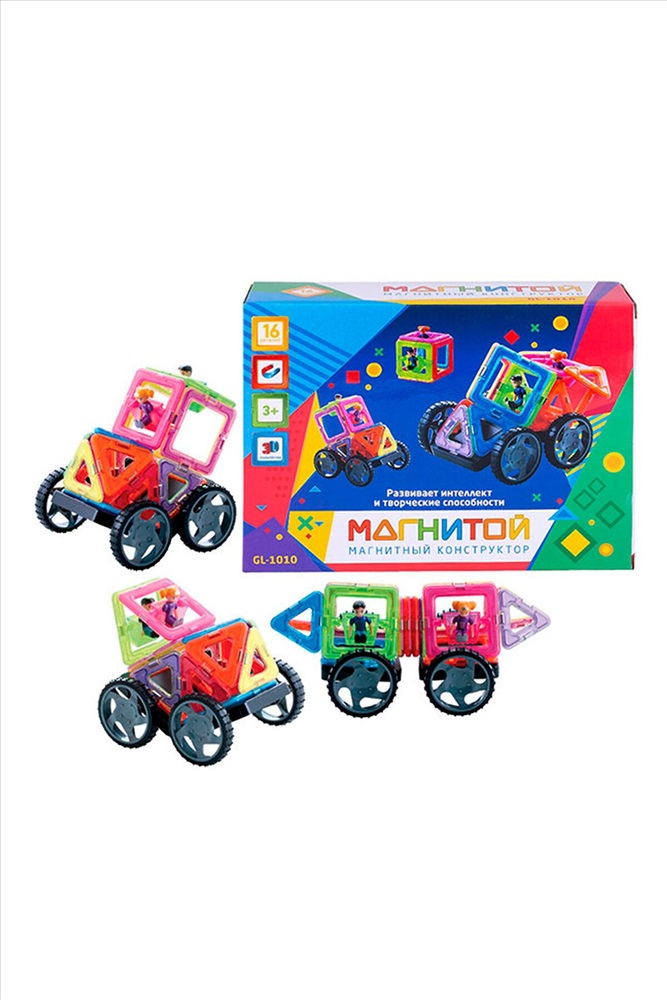 ID товара: 266973 Состав: 100% Пластмасса. Сезон: Осень/Зима Возраст: 4+ Конструирование, моделирование: Конструкторы и мозаики Раннее развитие: Конструкторы, кубики Страна бренда: Россия Страна производства: Китай Магнитой — это серия магнитных конструкторов, которые состоят из необычных разноцветных пластиковых деталей в виде различных плоских геометрических фигур и позволяют собирать объемные конструкции. Игровой набор состоит из 16 квадратных и треугольных деталей, двух пар колес с креплениями и 2 фигурок. Юный архитектор сможет соорудить 3D модель автомобиля, в которой едут пассажиры. Каждая деталь конструктора присоединяется к другой с помощью магнита, расположенного внутри. Игровой процесс увлечет ребенка и будет способствовать развитию логики, мышления, фантазии, воображения и мелкой моторики рук. Количество деталей:16 Комментарии к товару