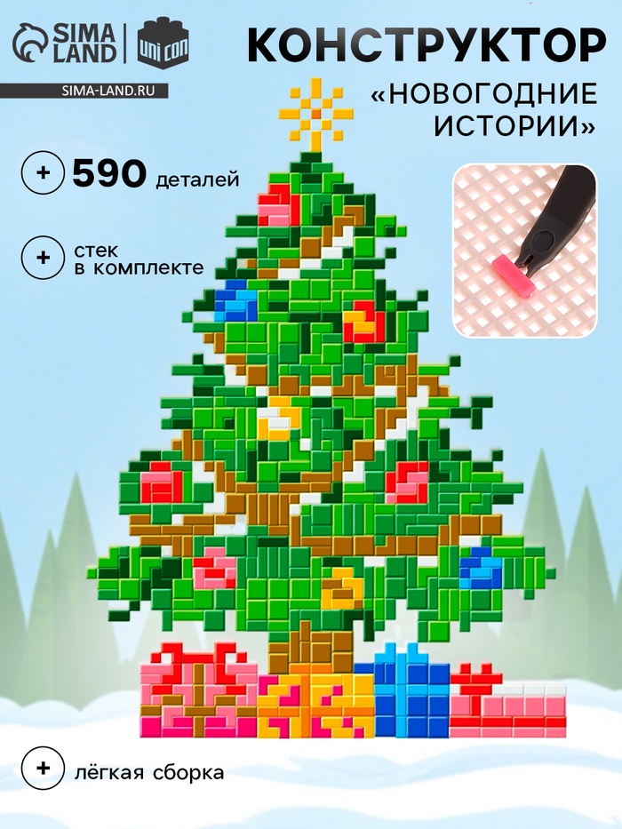 Габариты: 29,5 x 23,5 x 4 Страна: Китай В боксе: 60 шт Состав: Пластик Материалы: пластик Фасовка: по 1 шт Индивидуальная упаковка: Картонная коробка Сертификат: ЕАС Для кого: Унисекс Возраст: От 6 лет Количество элементов: 590 Тематика праздника: Новый год Материал: Пластик Вид: Пиксельный Тематика конструктора: Новогодняя Фиксированная цена: Да Конструктор «Новогодние истории» станет отличным подарком для детей и взрослых, которые любят создавать новогоднюю атмосферу своими руками. С помощью этого набора можно собрать красивую ёлку, а также добавить различные элементы декора, чтобы создать настоящий зимний праздник прямо у себя дома. Особенности