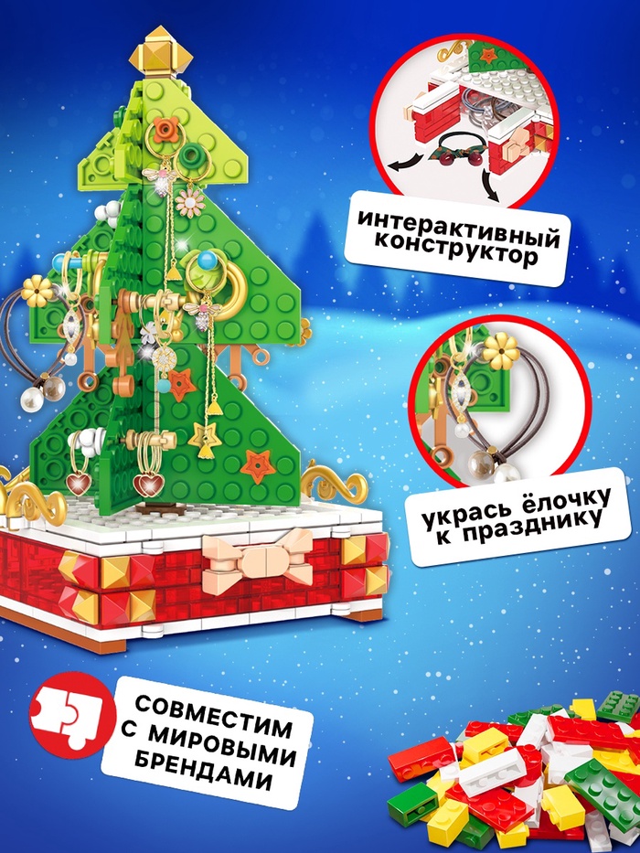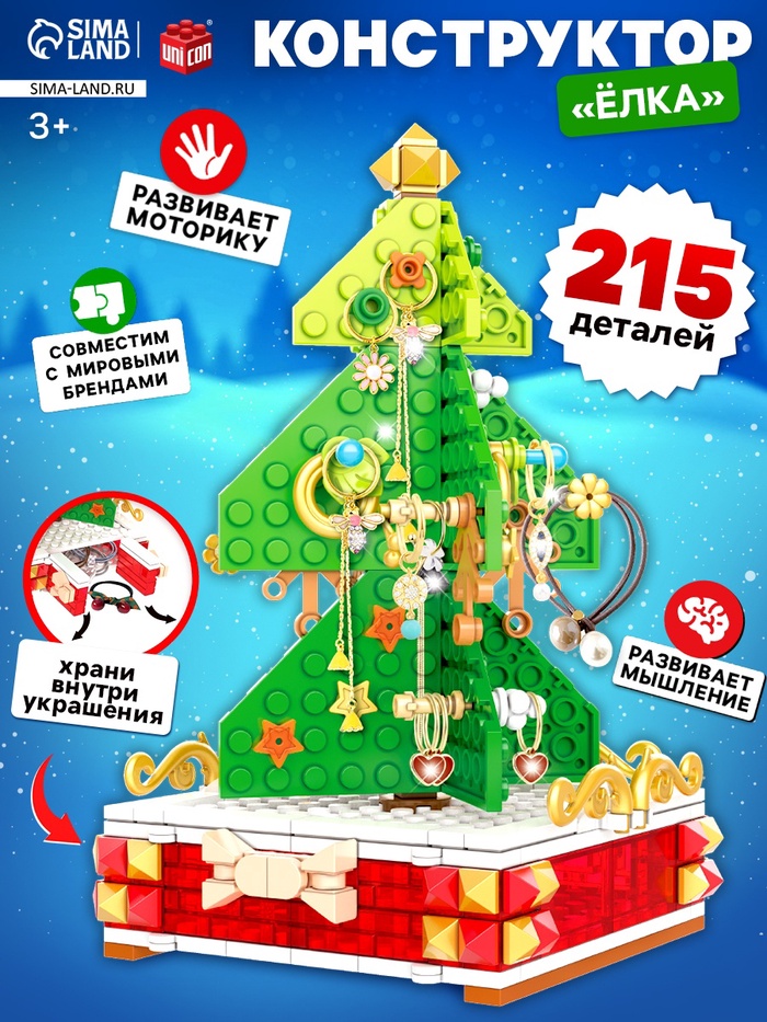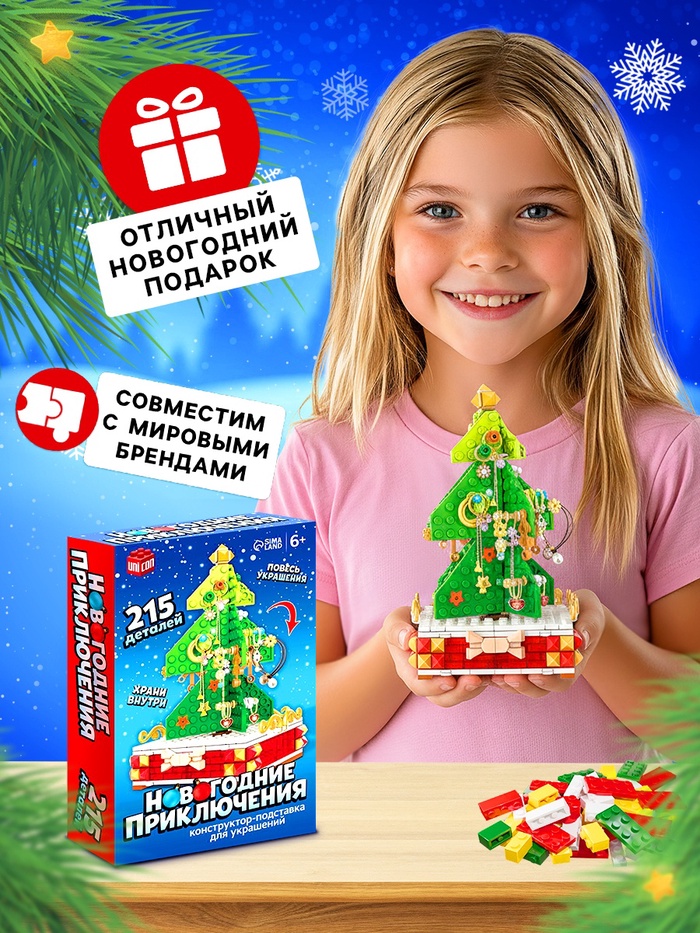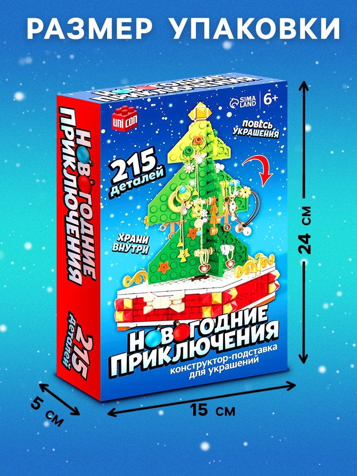 Габариты: 24 x 5 x 15 Страна: Китай В боксе: 36 шт Состав: Пластик Материалы: пластик Фасовка: по 1 шт Индивидуальная упаковка: Картонная коробка Сертификат: ЕАС Для кого: Унисекс Возраст: От 6 лет Среднее время сборки, мин: 105 Количество элементов: 215 Тематика праздника: Новый год Материал: Пластик Тематика конструктора: Новогодняя Уровень сложности: Средний Размер деталей: Классические детали Фиксированная цена: Да Маленькому любителю волшебства непременно понравится новогодний конструктор. С ним ребёнок не только разыграет праздничный сюжет, но и сможет придумать свои истории. Малыш соберёт ёлку своей мечты и декорирует её на свой вкус украшениями, которые входят в набор. Особенности