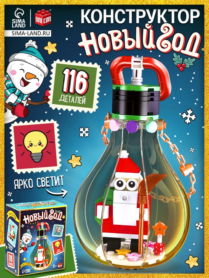 Создай свою новогоднюю сказку! Новогодний конструктор со светящимися деталями — это волшебный набор для праздничного настроения. Ребёнок соберёт фигурку главного зимнего волшебника, которая будет мягко светиться в вечернем интерьере, создавая атмосферу чуда.