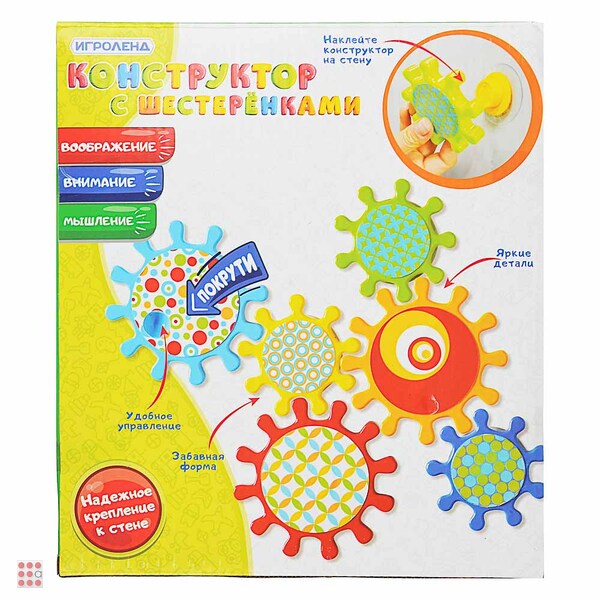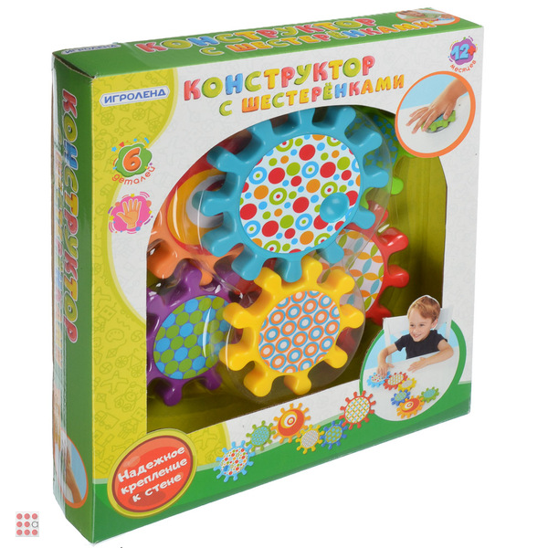 Конструктор с шестерёнками на присосках, 6 пр., ABS, 24х27х5см