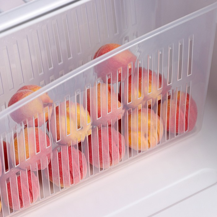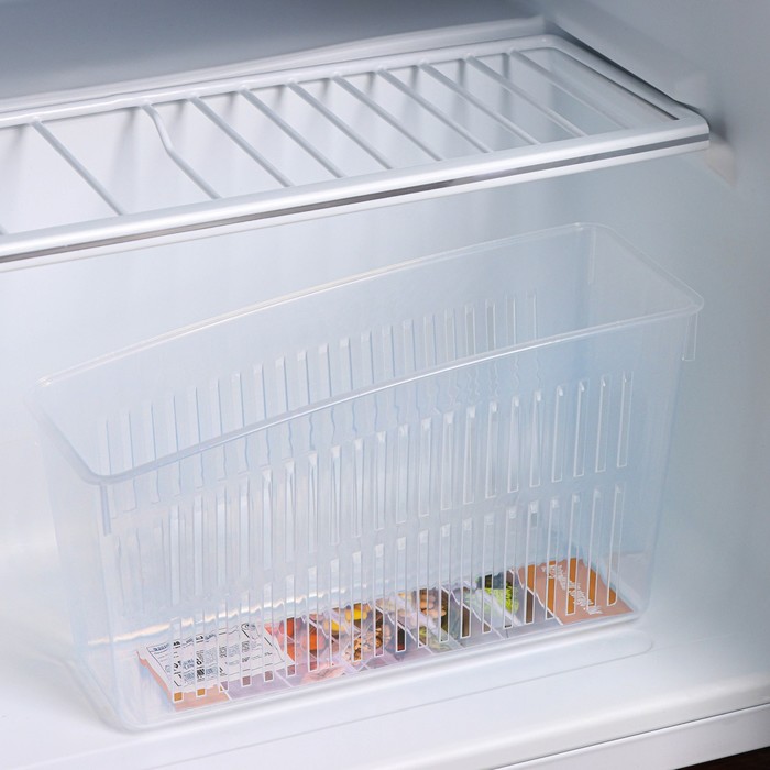 Прозрачный контейнер для холодильника — это практичное решение для хранения продуктов и организации пространства. Его прямоугольная форма и размеры 24.5×9.5×14 см позволяют удобно размещать овощи, фрукты, закуски или мелкие продукты, сохраняя их свежими и легко доступными.
