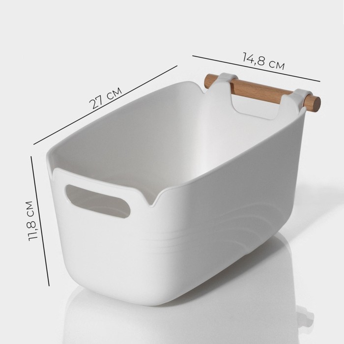 Габариты: 27 x 14,8 x 11,8 Страна: Китай В боксе: 12 шт Состав: Дерево, пластик Материалы: дерево, пластик Фасовка: по 1 шт Индивидуальная упаковка: Пакет Габариты товара: 27 см × 14,8 см × 11,8 см Сертификат: СТР Цвет: Белый Ширина, см: 14,8 Глубина, см: 11,5 Высота, см: 11,8 Рисунок: Нет Крышка: Нет Материал: Пластик Колёса/ролики: Нет Контейнер для хранения пригодится в каждом доме. Благодаря ему можно стилизовать любое помещение, убрать визуальный шум и уберечь вещи от различных внешних факторов. Комментарии к товару