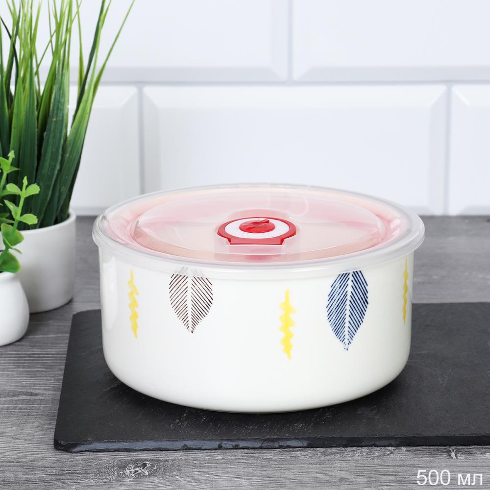 Контейнер-салатник из фарфора с пластиковой крышкой.