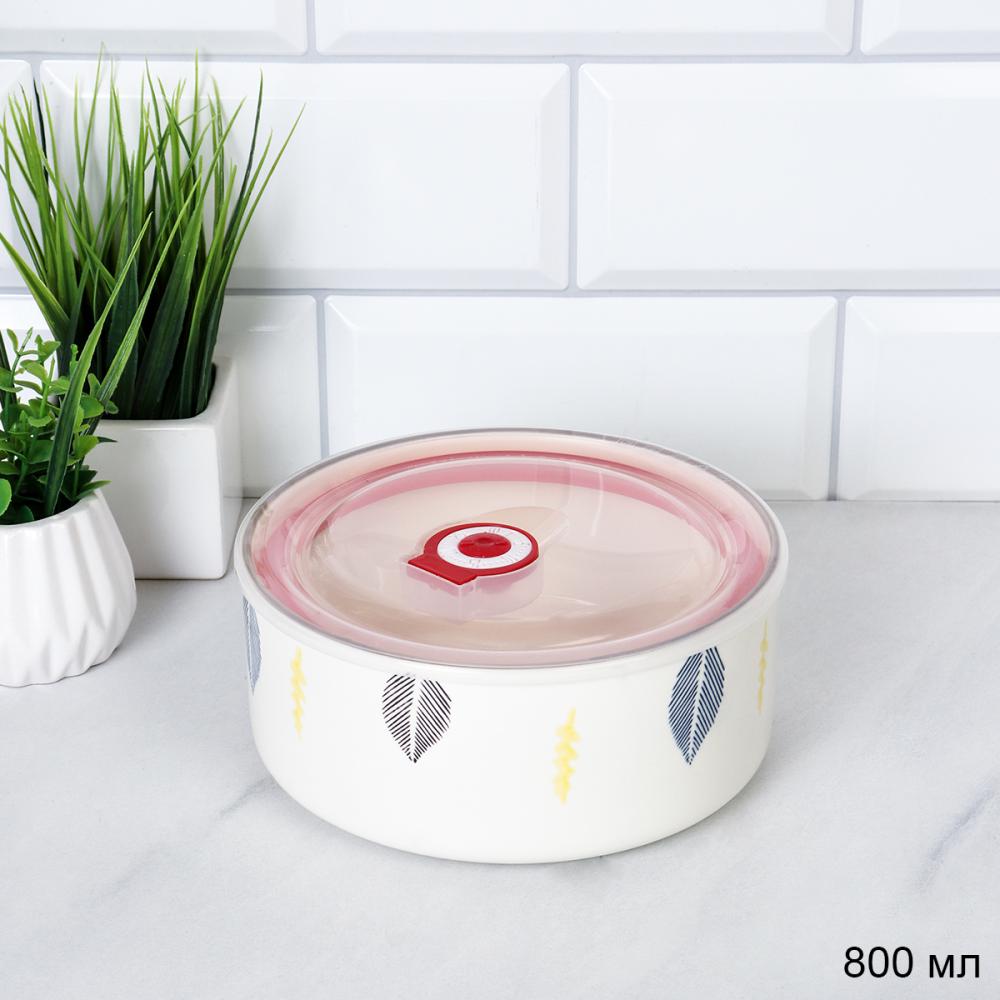 Контейнер-салатник из фарфора с пластиковой крышкой.