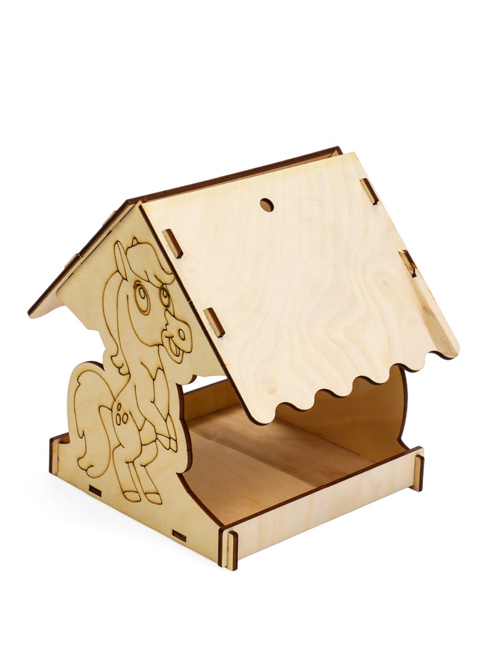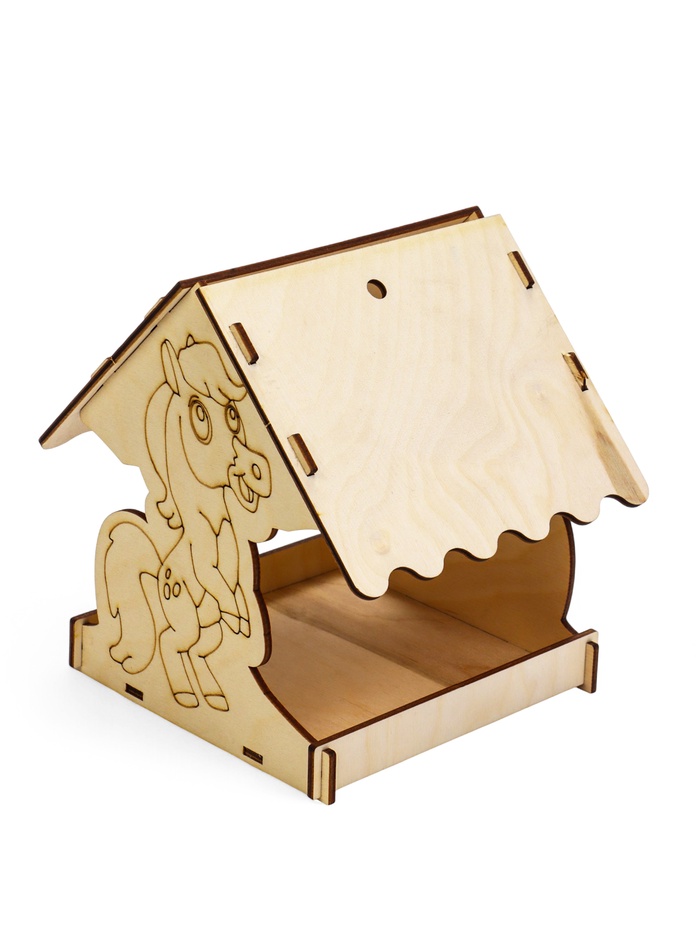Страна: Россия В боксе: 45 шт Состав: Дерево Материалы: дерево Фасовка: по 1 шт Индивидуальная упаковка: Пакет (БОПП, полиэтилен, ПВХ, дой-пак) Сертификат: Не подлежит сертификации Цвет: Бежевый Материал: Дерево Вид установки: Подвесной Можно оставлять зимой на улице: Да Фиксированная цена: Да Деревянная кормушка с рисунком лошади — это набор для сборки, который превращается в функциональную птичью столовую. Процесс сборки развивает мелкую моторику и прививает любовь к природе.