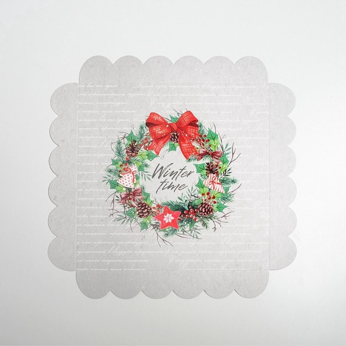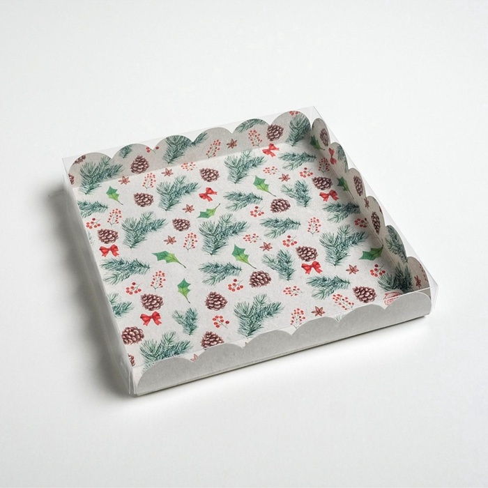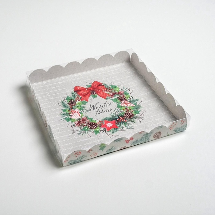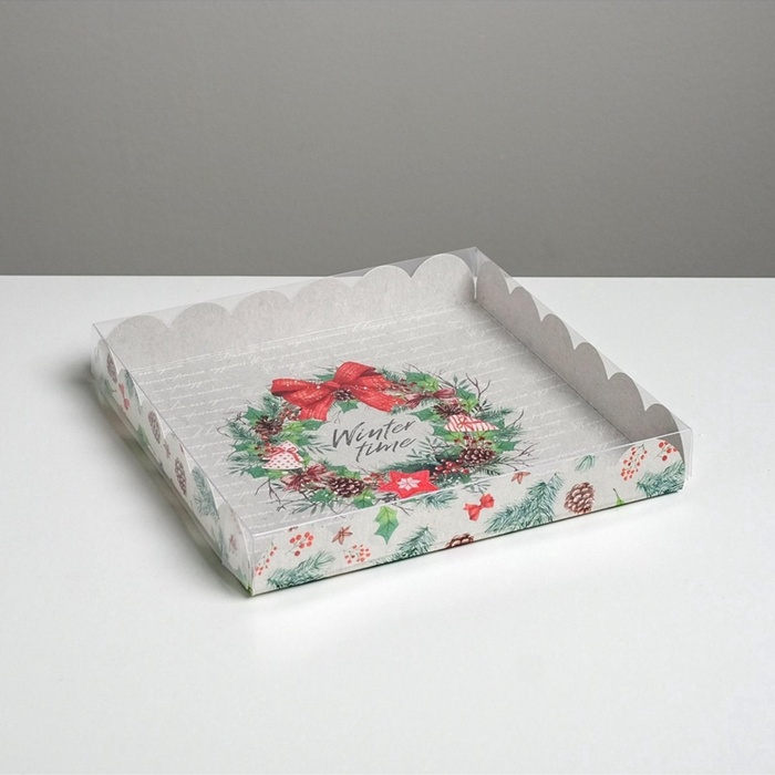 Коробка для кондитерских изделий новогодняя с пластиковой крышкой Winter time, 21×21×3 см
