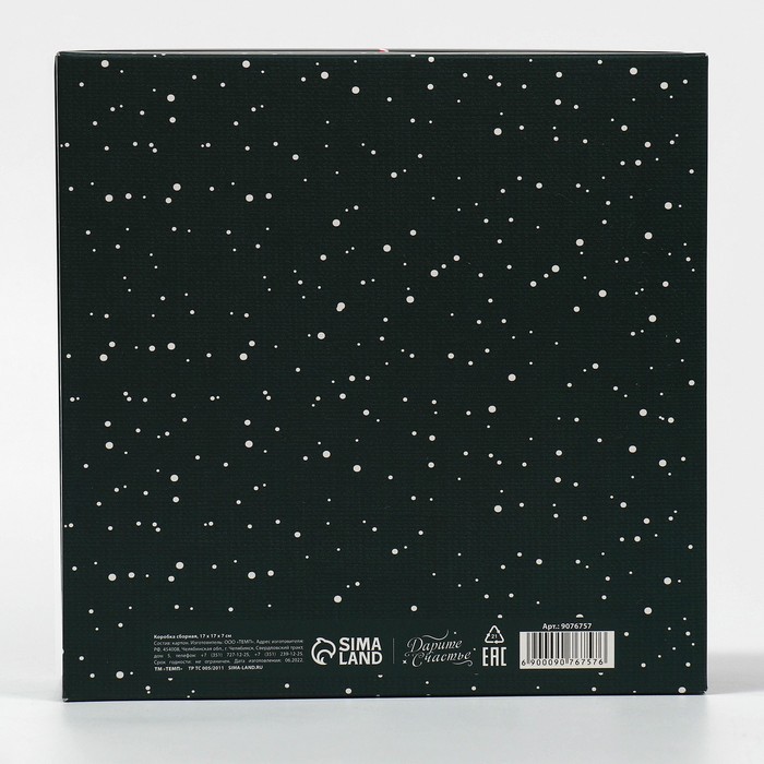 Габариты: 0,2 x 32,5 x 25 Доставка: Платная Страна: Россия В боксе: 80 шт Состав: Картон Материалы: картон Фасовка: по 1 шт Индивидуальная упаковка: Пакет Габариты товара: 17 см × 17 см × 7 см Сертификат: ЕАС Цвет: Чёрный Форма: Квадратная Плотность, г/м²: 300 Длина, см: 17 Ширина, см: 17 Высота, см: 7 Допустимый вес вложения, г: 400 Тематика: Новогодняя Символ года: Нет Тематика праздника: Новый год Материал: Картон Вид: Складные коробки Размер: Малый (11-17 см) Окошко: Нет Крышка-дно: Да Дизайн: С рисунком, надписью Комментарии к товару
