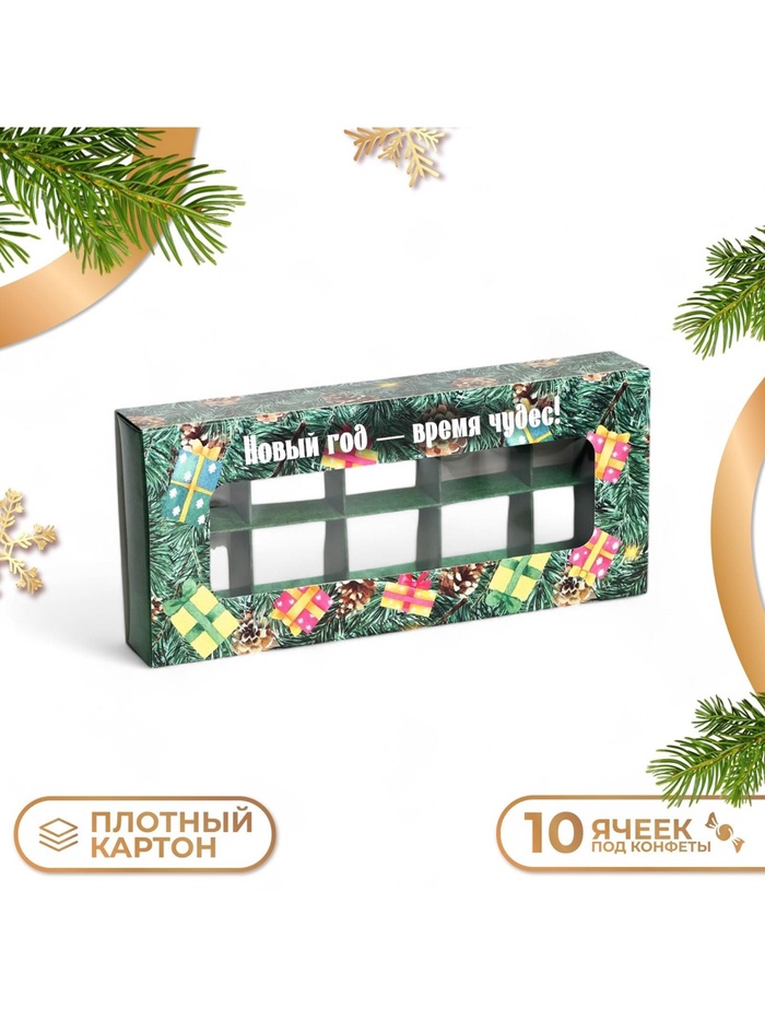 Габариты: 38,5 x 26,5 x 0,1 Страна: Китай В боксе: 525 шт Состав: PVC, картон Материалы: PVC, картон Фасовка: по 1 шт Индивидуальная упаковка: Пакет Сертификат: ЕАС Вид упаковки: Для конфет Цвет: Зелёный Форма: Прямоугольная Плотность, г/м²: 270 Длина, см: 22 Ширина, см: 9,8 Высота, см: 3,5 Количество ячеек: 10 Вместимость, шт.: 10 Тематика: Рождественская, Новогодняя Рисунок: Да Символ года: Нет Тематика праздника: Новый год, Рождество Материал: Картон Вид: Кондитерские коробки Вид еды: Для десертов, Для конфет, Для шоколада Вид: Квадратные, Крафт коробки, Складные коробки, Коробки-пеналы Размер: Малый (11-17 см) Дизайн: С рисунком, надписью Фиксированная цена: Да Коробка под 10 конфет "Новогодняя" размером 9,8х22х3,5 см - это прекрасный выбор для упаковки сладостей к празднику. Она выполнена в ярких новогодних цветах, что создает атмосферу праздника и волшебства. Коробка имеет прямоугольную форму и состоит из двух частей: верхней крышки и нижней части. Верхняя крышка украшена красивым рисунком, который подчеркивает новогоднюю тематику. Нижняя часть коробки предназначена для размещения конфет. Размеры коробки позволяют упаковать 10 штук конфет, что делает ее удобной для использования в качестве подарка или для домашнего использования. Коробка изготовлена из качественного картона, который обеспечивает надежную защиту содержимого от внешних воздействий. Эта коробка для конфет станет прекрасным дополнением к новогоднему столу или подарком для близких и друзей. Она создаст праздничное настроение и подарит радость всем, кто получит такой подарок. Комментарии к товару