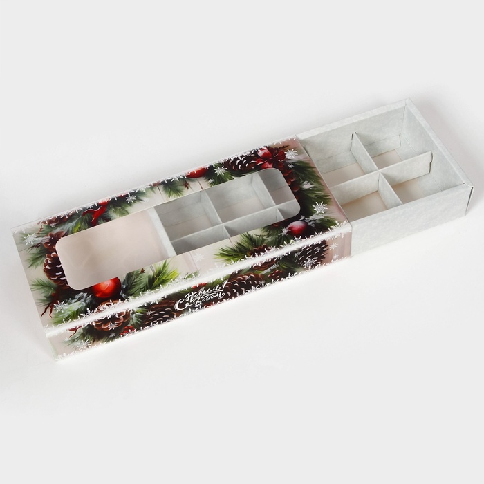 Коробка под 10 конфет "Новогодняя" размером 9,8х22х3,5 см - это прекрасный выбор для упаковки сладостей к празднику. Она выполнена в ярких новогодних цветах, что создает атмосферу праздника и волшебства.