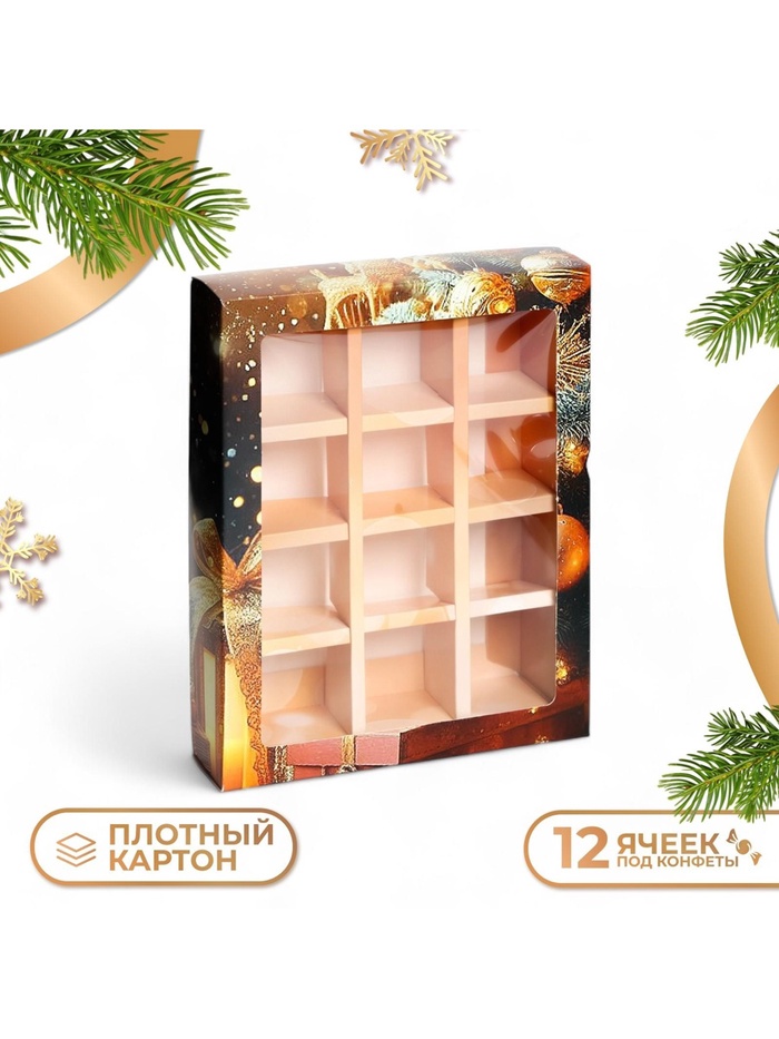 Коробка под 12 конфет новогодняя «Время чудес», 19×15×3.5 см