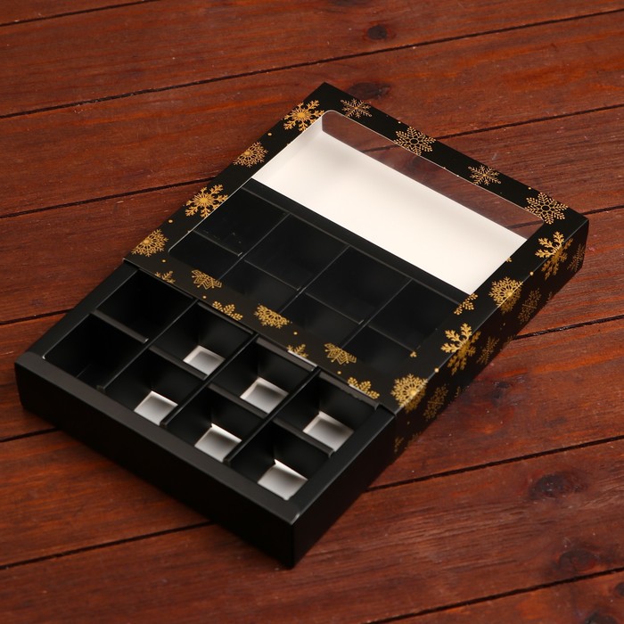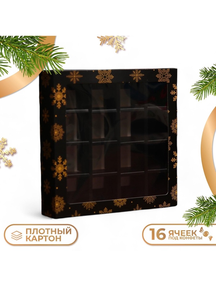 Коробка под 16 конфет "Новогодняя" размером 17,7х17,7х3,8 см - это прекрасный выбор для упаковки сладостей к празднику. Она выполнена в ярких новогодних цветах, что создает атмосферу праздника и волшебства.