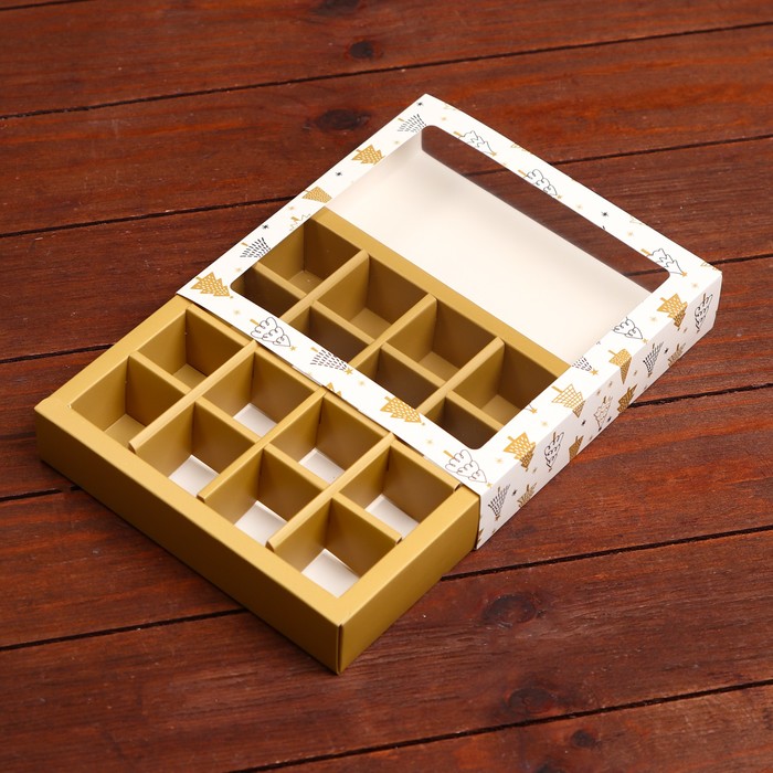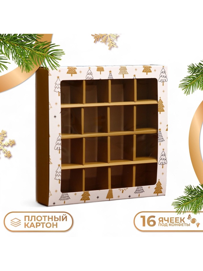 Габариты: 38 x 37 x 0,2 Страна: Китай В боксе: 1 шт Состав: PVC, картон Материалы: PVC, картон Фасовка: по 1 шт Индивидуальная упаковка: Пакет Сертификат: ЕАС Вид упаковки: Для конфет Цвет: Белый, Золотистый Форма: Квадратная Плотность, г/м²: 270 Длина, см: 17,7 Ширина, см: 17,7 Высота, см: 3,8 Количество ячеек: 16 Вместимость, шт.: 16 Тематика: Рождественская, Новогодняя Рисунок: Да Символ года: Нет Тематика праздника: Новый год, Рождество Материал: Картон Вид: Кондитерские коробки Вид еды: Для десертов, Для конфет, Для шоколада Вид: Складные коробки, Коробки-пеналы, Квадратные, Крафт коробки Размер: Малый (11-17 см) Дизайн: С рисунком, надписью Фиксированная цена: Да Коробка для конфет на 16 штук - идеальное решение для упаковки и подарка ваших любимых сладостей. Удобный формат позволяет разместить 16 конфет, создавая сладкий подарок или десертный набор. Эта коробка подчеркивает вкус и внешний вид ваших конфет, делая их готовыми к радостному моменту угощения. Размер ячейки: 4*4 см. Комментарии к товару