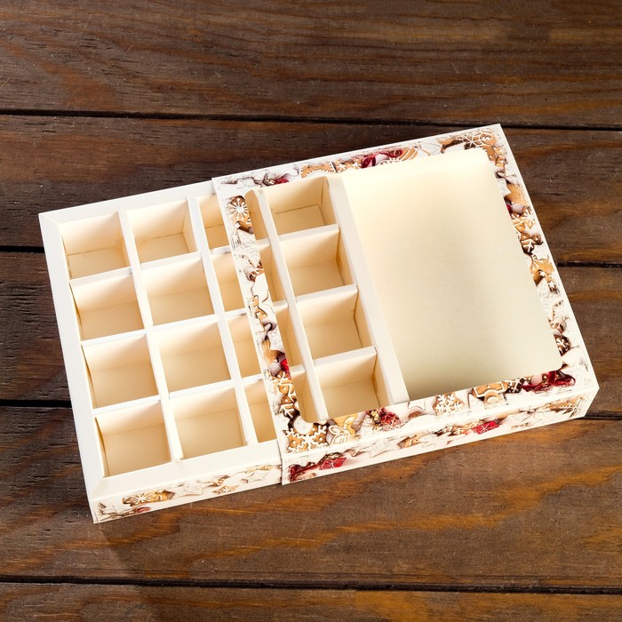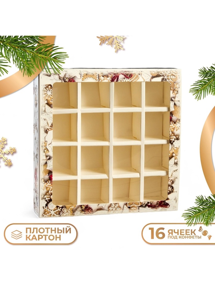 Габариты: 37 x 37 x 0,2 Страна: Россия В боксе: 100 шт Состав: Картон Материалы: картон Фасовка: по 5 шт Индивидуальная упаковка: Без упаковки Сертификат: ЕАС Вид упаковки: Для конфет Цвет: Бежевый Форма: Квадратная Плотность, г/м²: 300 Длина, см: 14,5 Ширина, см: 14,5 Высота, см: 3,5 Количество ячеек: 16 Вместимость, шт.: 16 Тематика: Рождественская, Новогодняя Символ года: Нет Тематика праздника: Рождество, Новый год Материал: Картон Вид: Кондитерские коробки Вид еды: Для шоколада, Для десертов, Для конфет Вид: Крафт коробки, Квадратные, Складные коробки Размер: Малый (11-17 см) Дизайн: С рисунком, надписью Фиксированная цена: Да Коробка для конфет на 16 штук - идеальное упаковочное решение для ваших любимых сладостей. Элегантный и компактный дизайн этой коробки делает её идеальным подарком или дополнением к любому особенному моменту. Вмещает 16 вкусных конфет, предлагая их вам в стильной упаковке, готовой к подарку. Преимущества: плотный картон; сохраняет вкусовые качества кондитерского изделия; удобно использовать при транспортировке; ложемент можно достать и использовать как простую подарочную коробку. Комментарии к товару