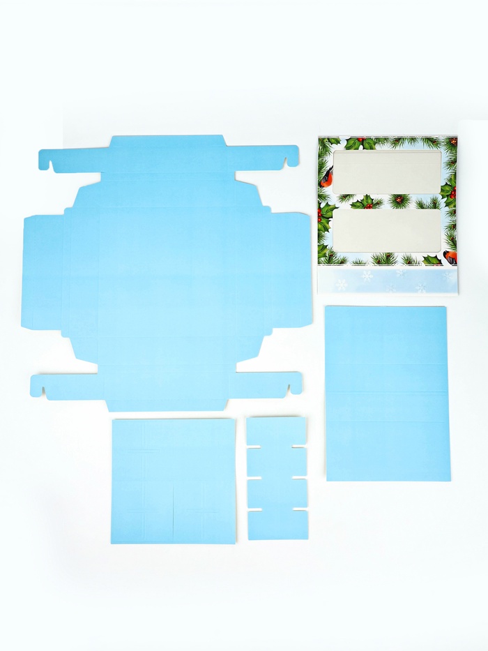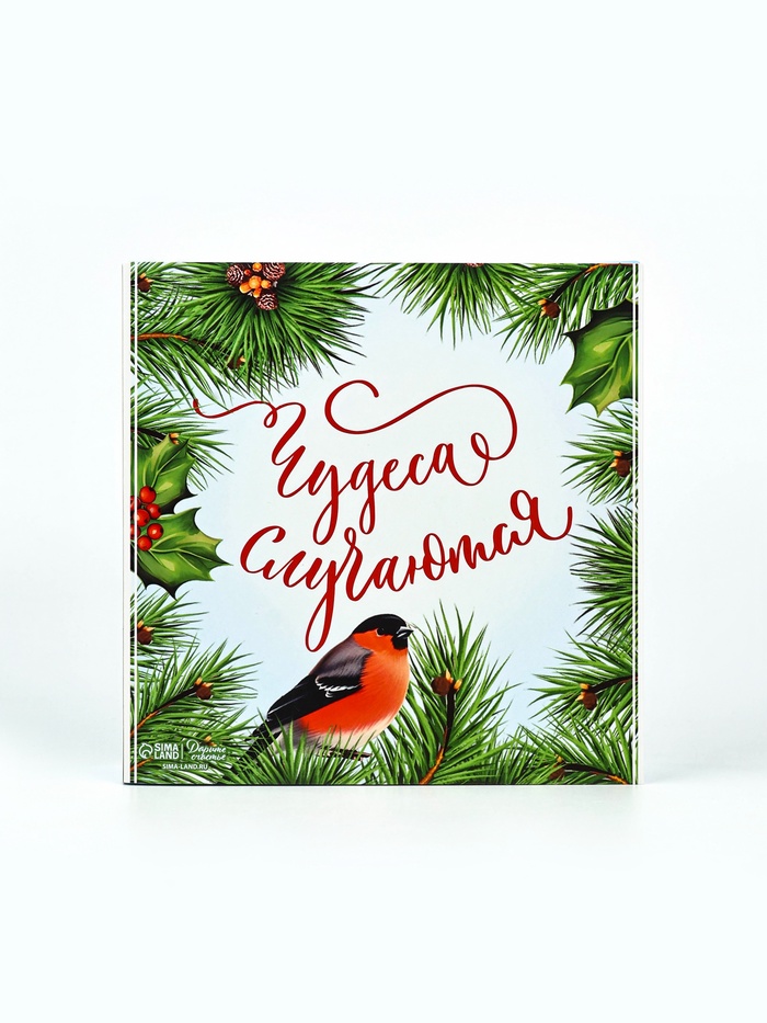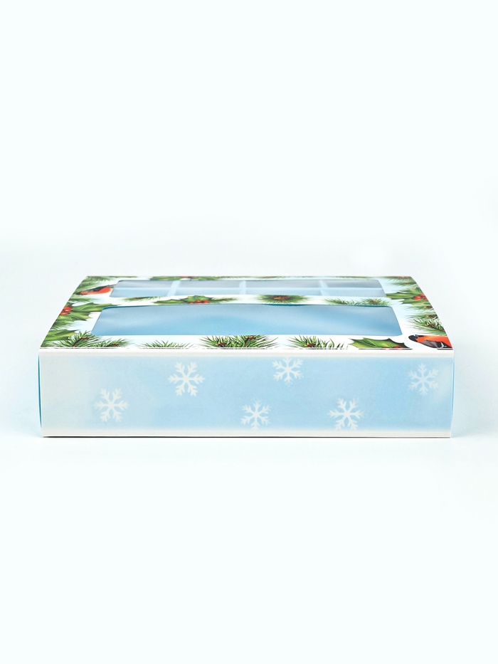 Прекрасно оформленная коробка выполнена в традиционном праздничном стиле, что придает ей волшебное зимнее очарование.