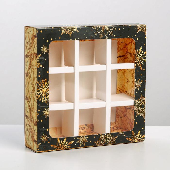 Габариты: 0,2 x 33 x 33 Страна: Китай В боксе: 285 шт Состав: Картон, пластик Материалы: картон, пластик Фасовка: по 5 шт Индивидуальная упаковка: Пакет Габариты товара: 14,5 см × 14,5 см × 3,5 см Сертификат: ЕАС Вид упаковки: Для конфет Цвет: Чёрный, Золотистый Форма: Квадратная Плотность, г/м²: 280 Длина, см: 14,5 Ширина, см: 14,5 Высота, см: 3,5 Количество ячеек: 9 Допустимый вес вложения, г: 200 Тематика: Узоры, Новогодняя Символ года: Нет Тематика праздника: Новый год Материал: Пластик, Картон Вид: Складные коробки Для детей до 3 лет: Нет Размер: Малый (11-17 см) Дизайн: С рисунком, надписью Размер внутреннего пространства 12,5 х 12,5 см, размер ячейки 3,5 см. Комментарии к товару
