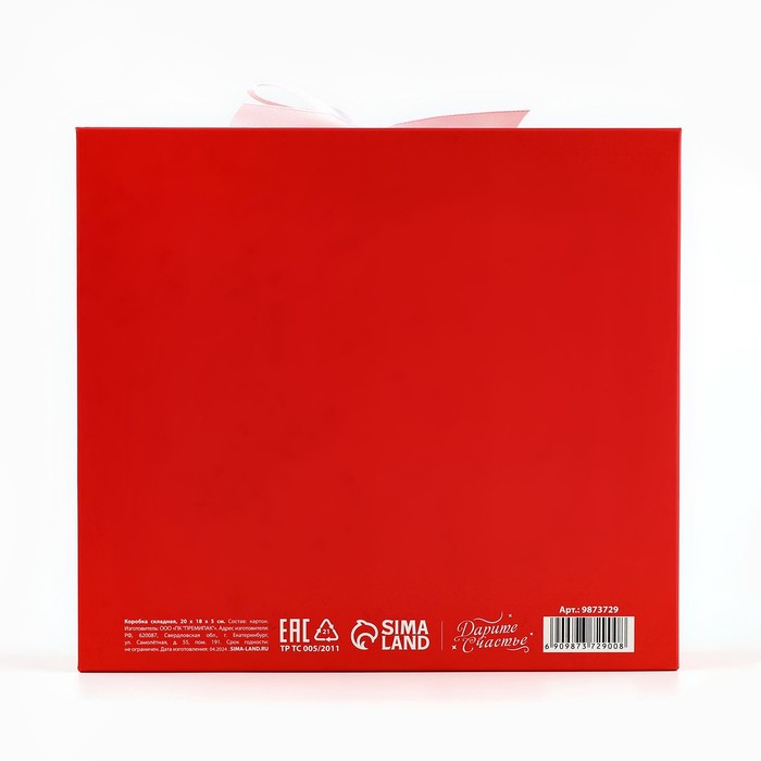Габариты: 29 x 20 x 0,5 Страна: Россия В боксе: 250 шт Состав: Картон Материалы: картон Фасовка: по 1 шт Индивидуальная упаковка: Термоусадочная пленка Сертификат: ЕАС Цвет: Красный Форма: Прямоугольная Плотность, г/м²: 250 Длина, см: 20 Ширина, см: 18 Высота, см: 5 Допустимый вес вложения, г: 350 Тематика: Новогодняя Символ года: Нет Тематика праздника: Новый год Материал: Картон Вид: Складные коробки Размер: Средний (18-24 см) Окошко: Нет Крышка-дно: Нет Дизайн: С рисунком, надписью Комментарии к товару