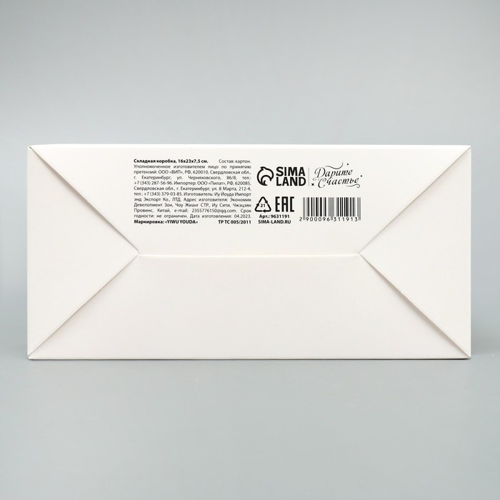 Габариты: 0,1 x 23,5 x 38,5 Страна: Россия В боксе: 250 шт Состав: Картон Материалы: картон Фасовка: по 1 шт Индивидуальная упаковка: Полиэтиленовая пленка Габариты товара: 16 см × 23 см × 7,5 см Сертификат: ЕАС Цвет: Белый Форма: Прямоугольная Плотность, г/м²: 250 Длина, см: 16 Ширина, см: 7,5 Высота, см: 23 Допустимый вес вложения, г: 300 Тематика: Новогодняя Символ года: Нет Тематика праздника: Новый год Материал: Картон Вид ручки: Без ручки Вид: Складные коробки Размер: Средний (18-24 см) Окошко: Нет Крышка-дно: Нет Дизайн: С рисунком, надписью Комментарии к товару