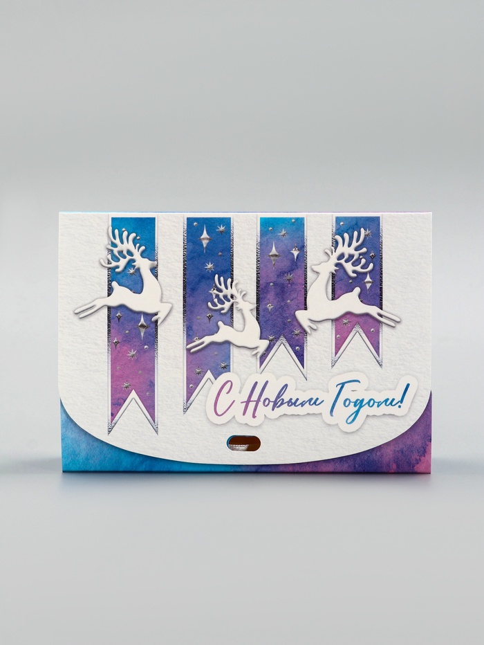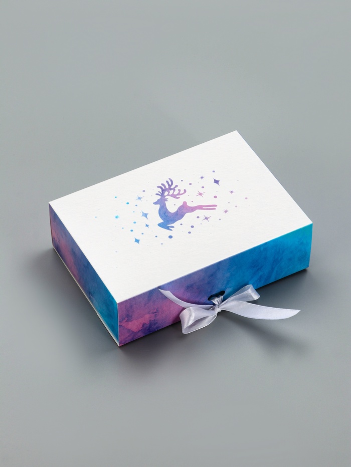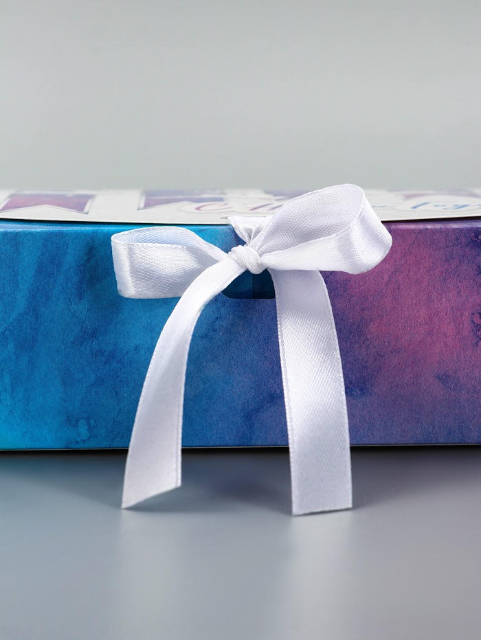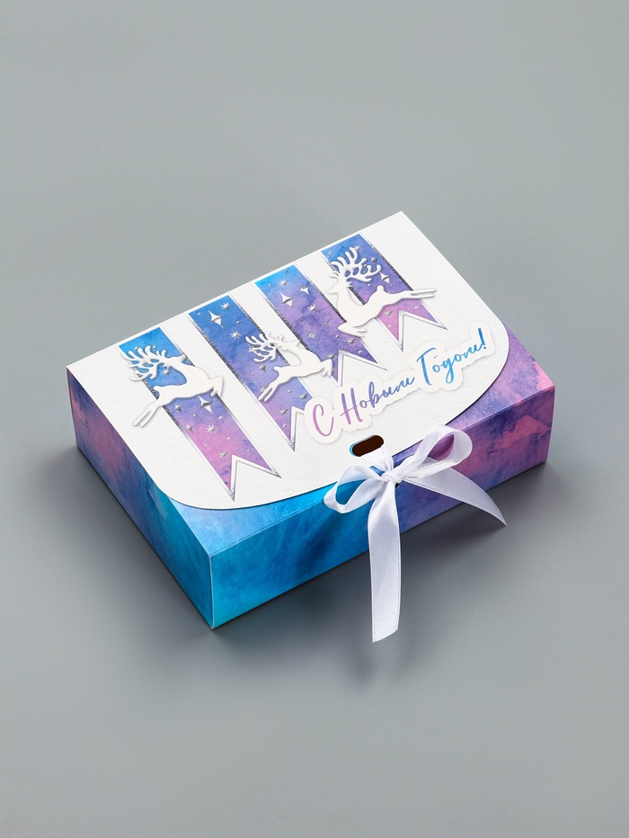 Идеи для вдохновения: В эту коробку можно положить набор ароматных свечей, дополнив их веточкой ели. Или упаковать новогодний чайный набор с именной открыткой. Необычная цветовая гамма делает коробку отличным выбором для подарков девушкам и детям. Добавьте атласную ленту — и упаковка заиграет новыми красками! Комментарии к товару