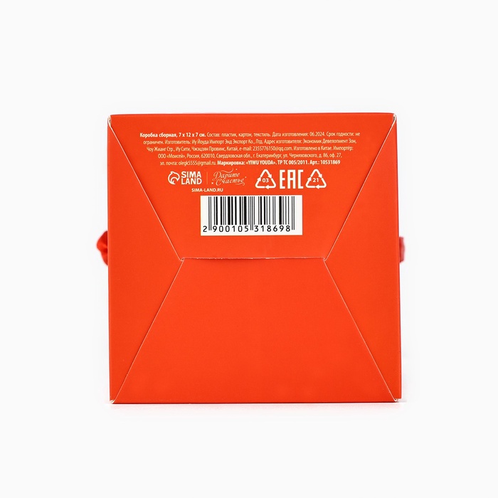 Габариты: 0,1 x 14,5 x 25 Страна: Китай В боксе: 350 шт Состав: Картон, пластик, текстиль Материалы: картон, пластик, текстиль Фасовка: по 1 шт Индивидуальная упаковка: Пакет Габариты товара: 7 см × 7 см × 12 см Сертификат: ЕАС Цвет: Красный Форма: Прямоугольная, Квадратная Длина, см: 7 Ширина, см: 7 Высота, см: 12 Допустимый вес вложения, г: 200 Тематика: Новогодняя Символ года: Нет Тематика праздника: Новый год Материал: Пластик, Картон Вид: Складные коробки Размер: Малый (11-17 см) Окошко: Нет Крышка-дно: Нет Дизайн: С рисунком, надписью Фиксированная цена: Да Комментарии к товару