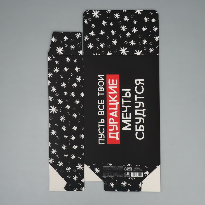 Габариты: 0,1 x 23,5 x 38,5 Страна: Россия В боксе: 250 шт Состав: Картон Материалы: картон Фасовка: по 1 шт Индивидуальная упаковка: Полиэтиленовая пленка Габариты товара: 16 см × 23 см × 7,5 см Сертификат: ЕАС Цвет: Чёрный Форма: Прямоугольная Плотность, г/м²: 250 Длина, см: 16 Ширина, см: 7,5 Высота, см: 23 Допустимый вес вложения, г: 300 Тематика: Новогодняя, Приколы Символ года: Нет Тематика праздника: Новый год Материал: Картон Вид ручки: Без ручки Вид: Складные коробки Размер: Средний (18-24 см) Окошко: Нет Крышка-дно: Нет Дизайн: С рисунком, надписью Комментарии к товару