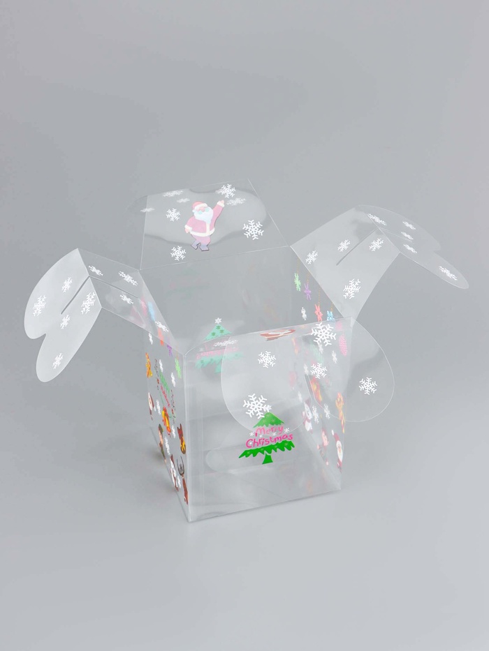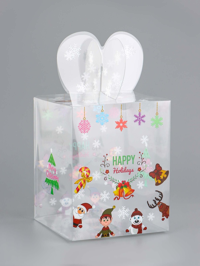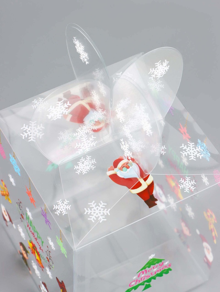 Новогоднее настроение в каждой детали! Коробка «Весёлый Дед Мороз» (12×12×15 см) — яркая прозрачная упаковка с праздничным дизайном, которая превратит любой подарок в особенный новогодний сюрприз.