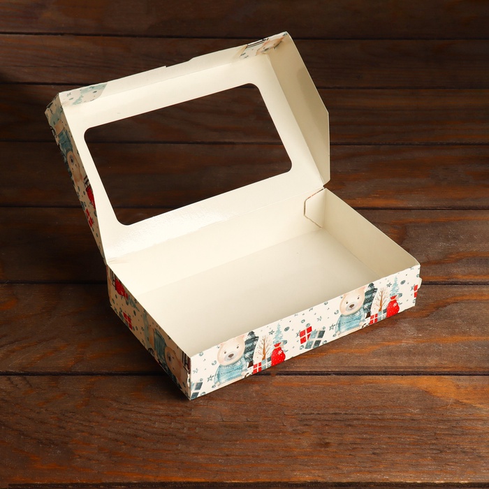Габариты: 28 x 41,5 x 0,1 Страна: Россия В боксе: 600 шт Состав: Картон Материалы: картон Фасовка: по 5 шт Индивидуальная упаковка: Без упаковки Сертификат: ЕАС Цвет: Белый Форма: Прямоугольная Плотность, г/м²: 280 Длина, см: 20 Ширина, см: 12 Высота, см: 4 Допустимый вес вложения, г: 250 Тематика: Новогодняя Символ года: Нет Тематика праздника: Новый год Материал: Картон Вид: Складные коробки, Прямоугольные Размер: Средний (18-24 см) Окошко: Да Крышка-дно: Нет Дизайн: С рисунком, надписью Идеальное решение для упаковки и транспортировки вашей вкуснейшей выпечки и сладостей. Мы позаботились о том, чтобы каждая деталь этой коробки соответствовала самым высоким стандартам качества и удобства. Внутренняя поверхность коробки покрыта тонкой защитной плёнкой, которая эффективно предотвращает раскисание материала. Это гарантирует, что ваши кондитерские изделия останутся свежими и вкусными, как только их упаковали. Коробка также легко и удобно складывается, что обеспечивает простоту использования при упаковке и транспортировке ваших кондитерских шедевров. Прозрачное окно позволяет вашим клиентам увидеть, какие уникальные и вкусные угощения они приобретают, что создает аппетитное влечение. Комментарии к товару