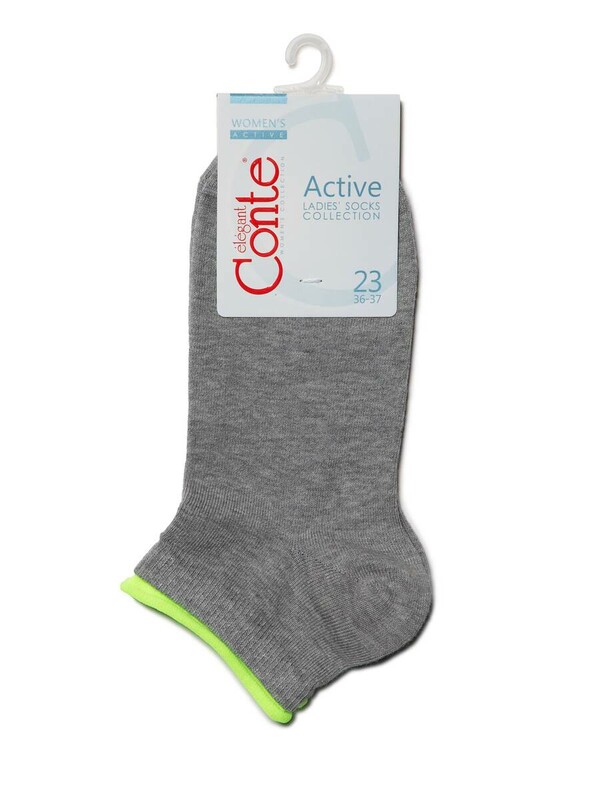 Производитель: CONTE ELEGANT Укороченные спортивные женские носки из хлопка, однотонные с контрастной декоративной отделкой по краю резинки.