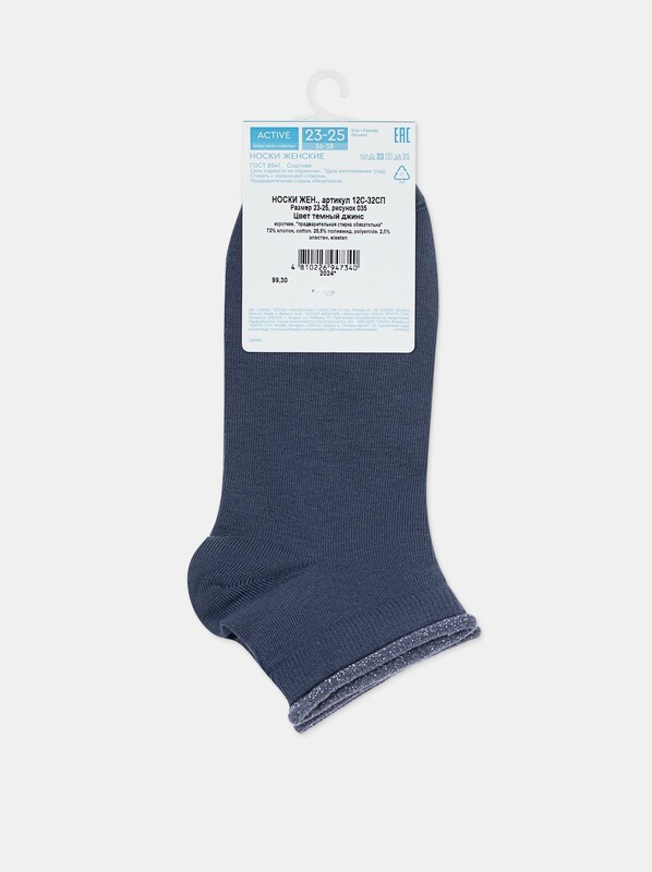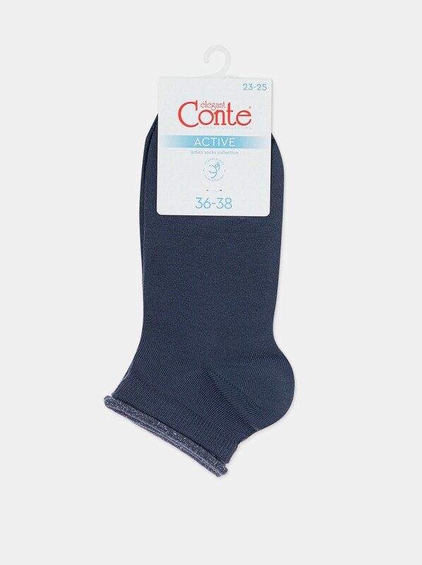 Укороченные спортивные женские носки из хлопка, однотонные с контрастной декоративной отделкой по краю резинки.