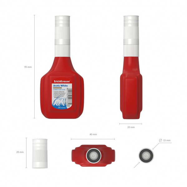 Быстросохнущая корректирующая жидкость во флаконе с пластиковым наконечником для точечных исправлений. Показывает отличный результат на всех типах и цветах чернил. Пластиковый наконечник обеспечивает плавное движение и экономичный расход. Жидкость удобно наносить локально на необходимый фрагмент, создавая непрозрачный слой, незаметный на ксерокопиях. Морозостойкая. На основе растворителя. Перед применением жидкость необходимо взболтать с помощью внутреннего металлического шарика.