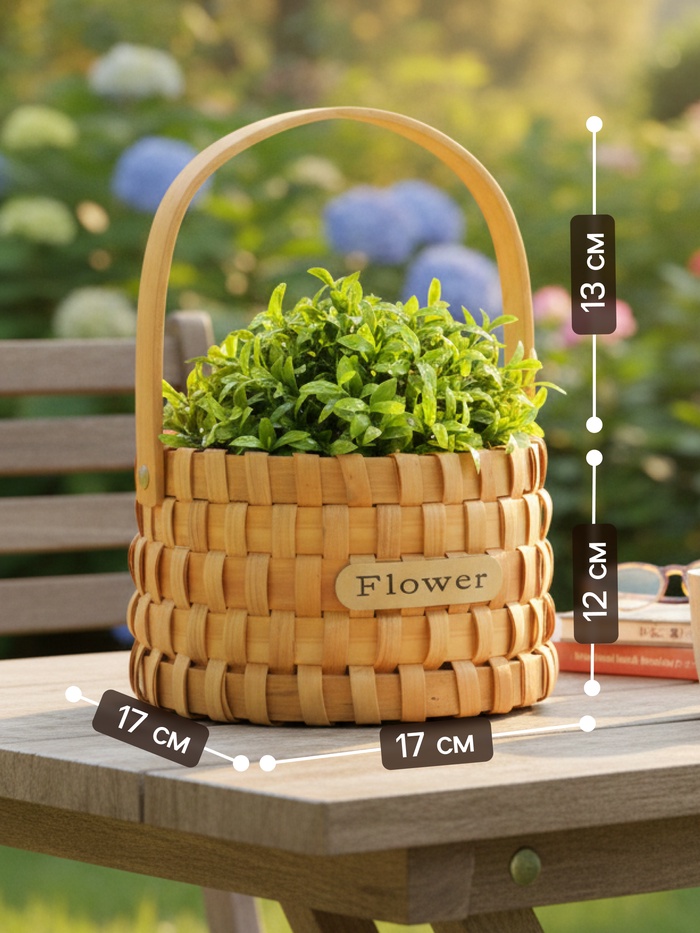Габариты: 20 x 20 x 13 Страна: Китай В боксе: 30 шт Состав: Бамбук Материалы: бамбук Фасовка: по 1 шт Индивидуальная упаковка: Без упаковки Габариты товара: 17 см × 17 см × 12 см Сертификат: Не подлежит сертификации Набор: Нет Цвет: Бежевый Форма: Круглая Длина, см: 17 Ширина, см: 17 Глубина, см: 12 Высота, см: 25 Высота без ручки, см: 12 Высота с ручкой, см: 25 Крышка: Нет Материал: Бамбук С ручкой: Да Дизайн: С рисунком, надписью Плетёная корзина из бамбука — это универсальный аксессуар для хранения, который сочетает в себе экологичность, прочность и лаконичный дизайн. Она станет стильным и функциональным дополнением в любой комнате.