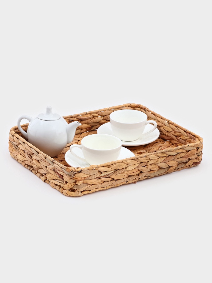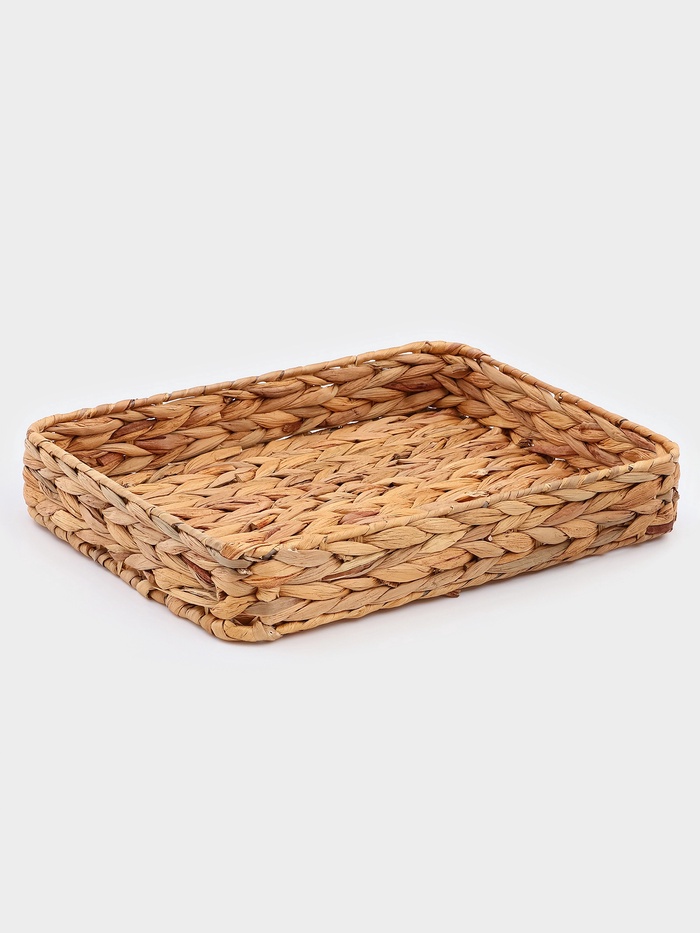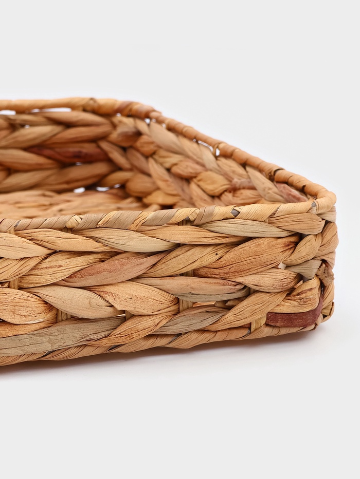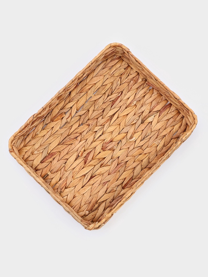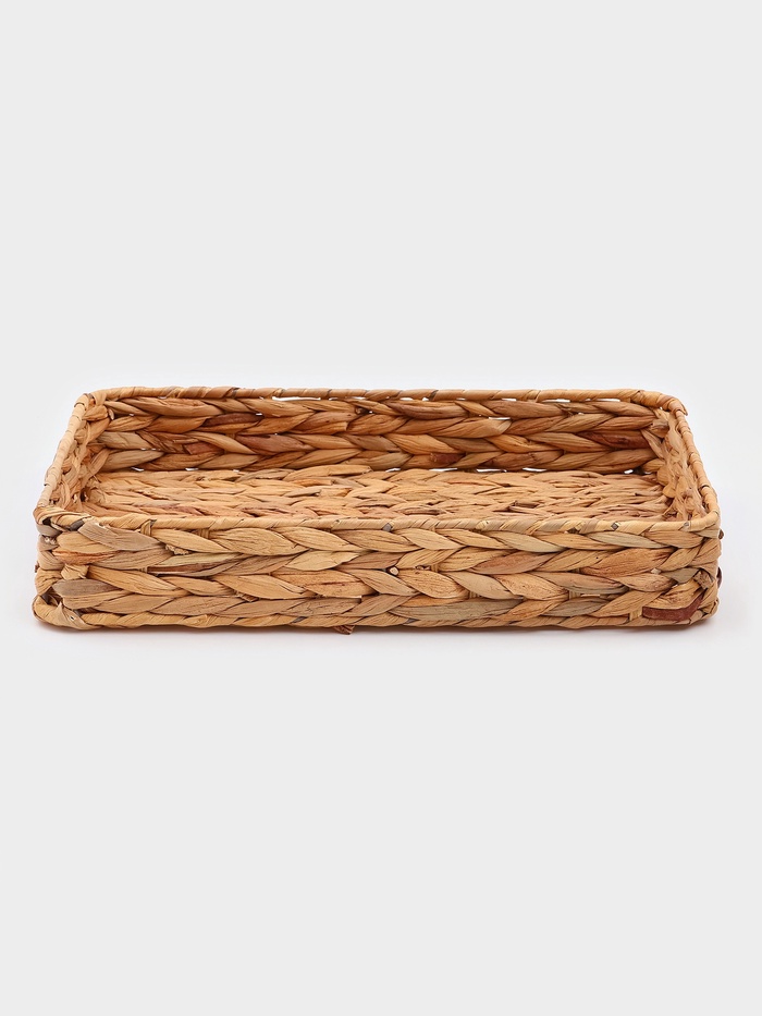 Дизайн корзинки продуман до мелочей: прямоугольная форма позволяет экономить место на столе, а бежевый цвет делает её универсальной для любого декора. Корзинка выполнена из камыша, что обеспечивает её прочность и долговечность.