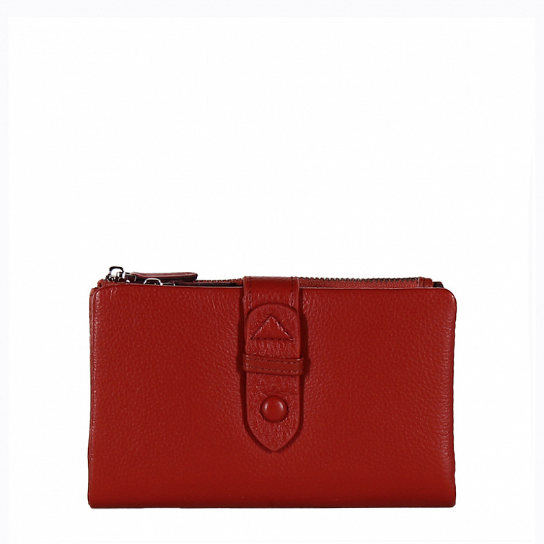 Компактный кошелек складывается пополам, выполнен из натуральной кожи. Дополнен серебристой фурнитурой. Закрывается на хлястик.