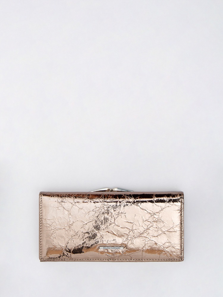 Высота (см): 9 Бренд: Velina Fabbiano Материал: Натуральная кожа Кошелек женский из натуральной кожи. Модель закрывается на клапан, внутри три открытых отдела под купюр, девять карманов для визиток и пластиковых карт. Снаружи карман закрывается на фермуар. Комментарии к товару