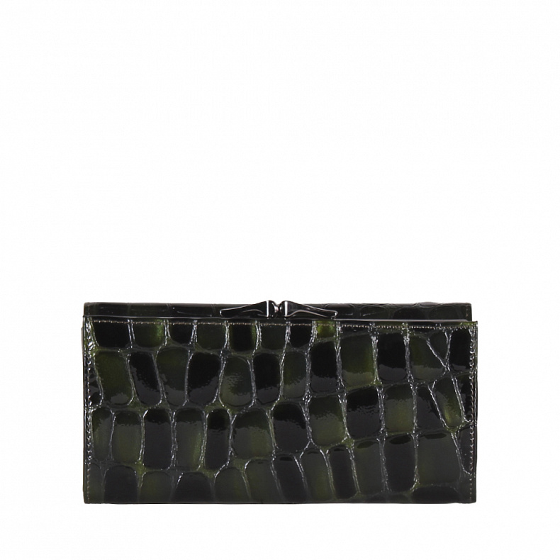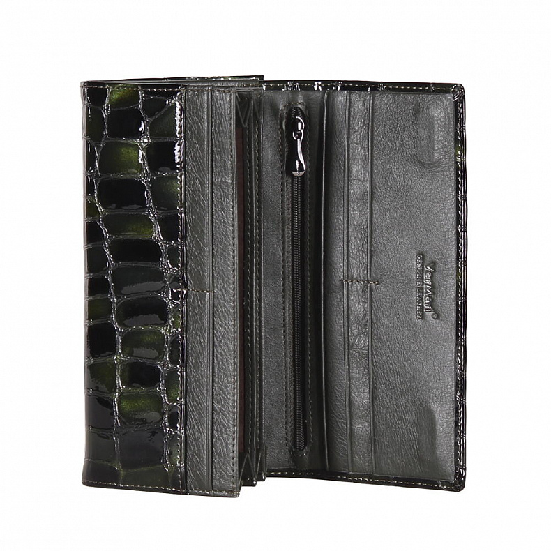 Внутри девять отделов для карт, три отдела для купюр и один кармашек на молнии.